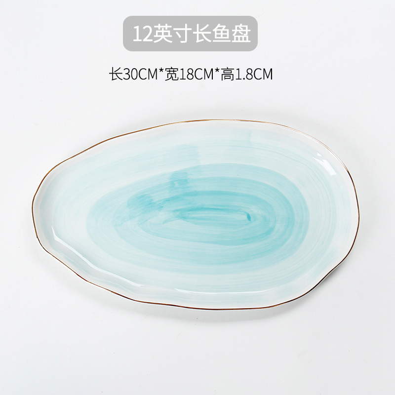 • 12inch 파란색 긴 물고기 접시