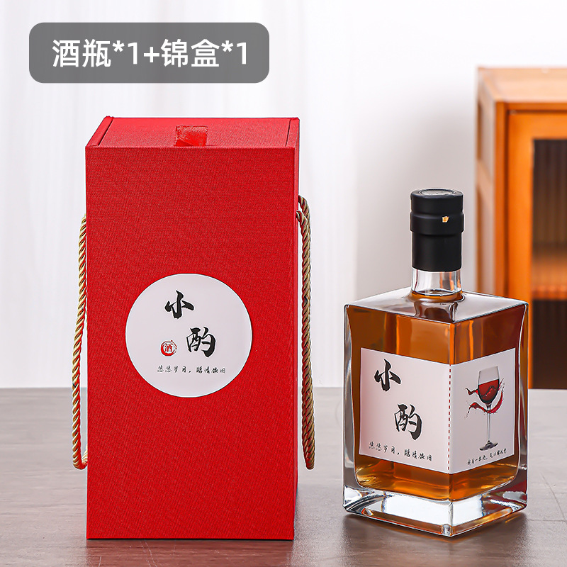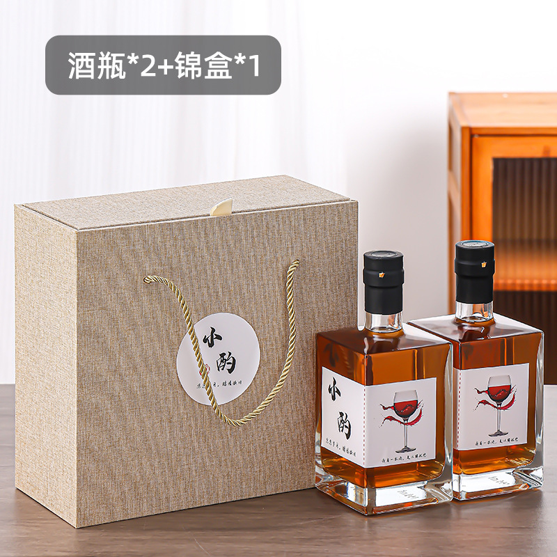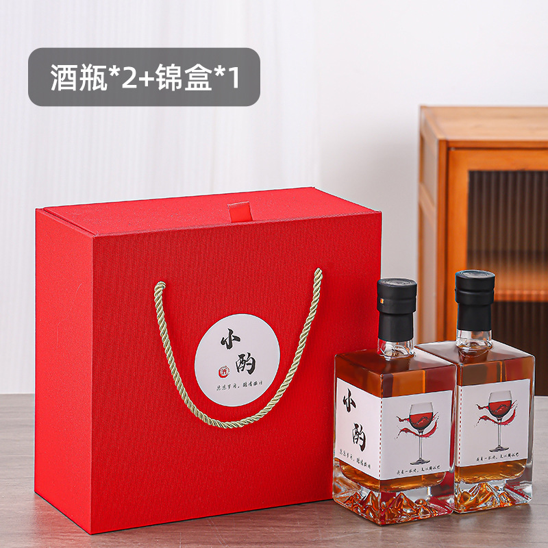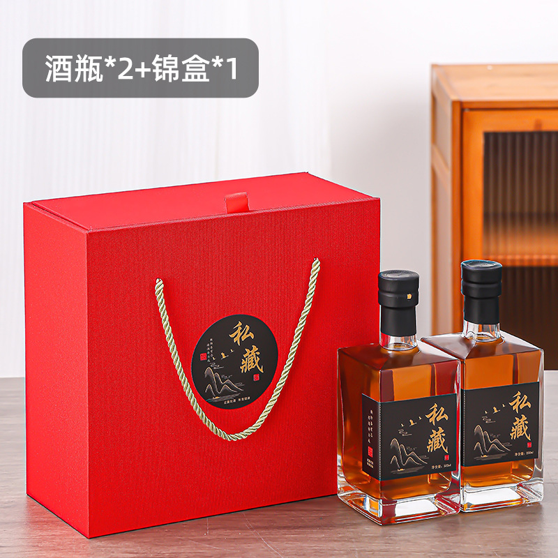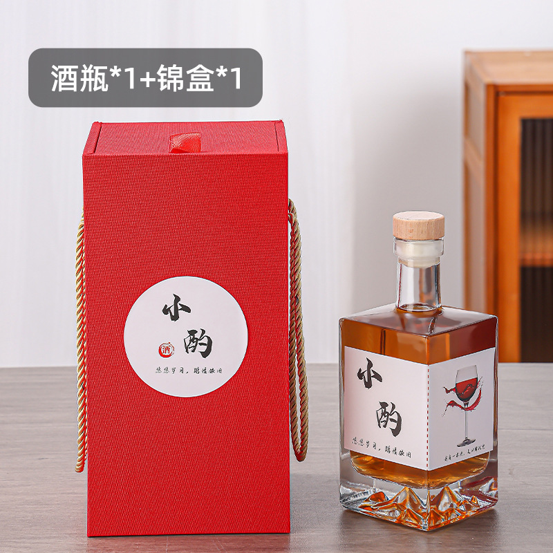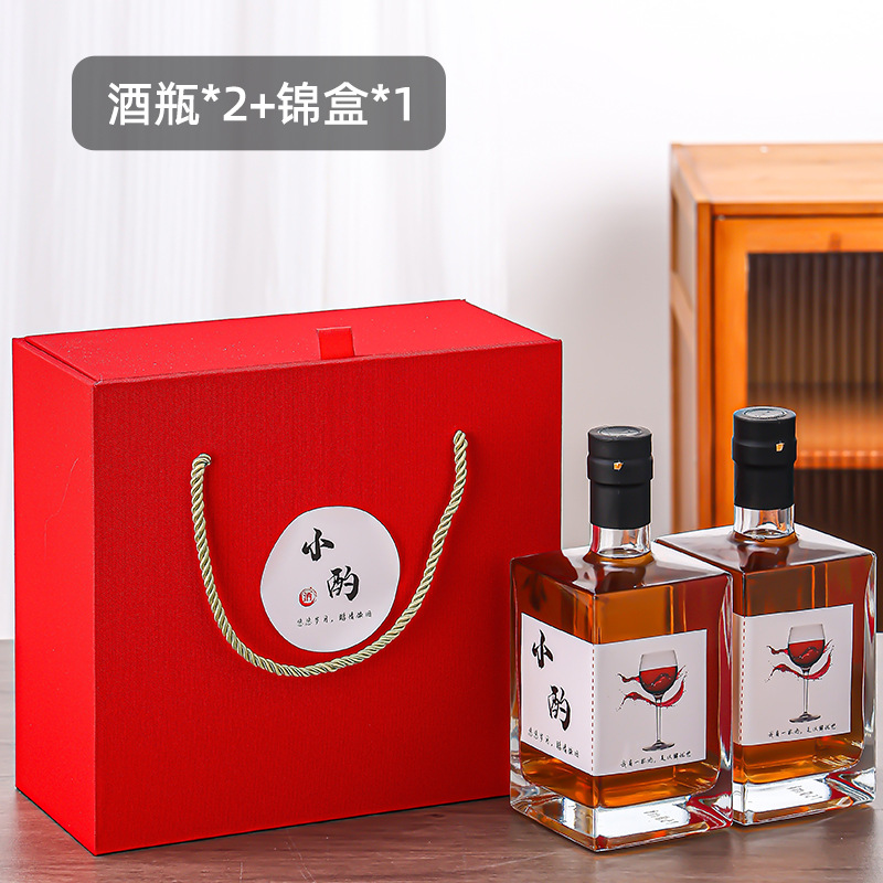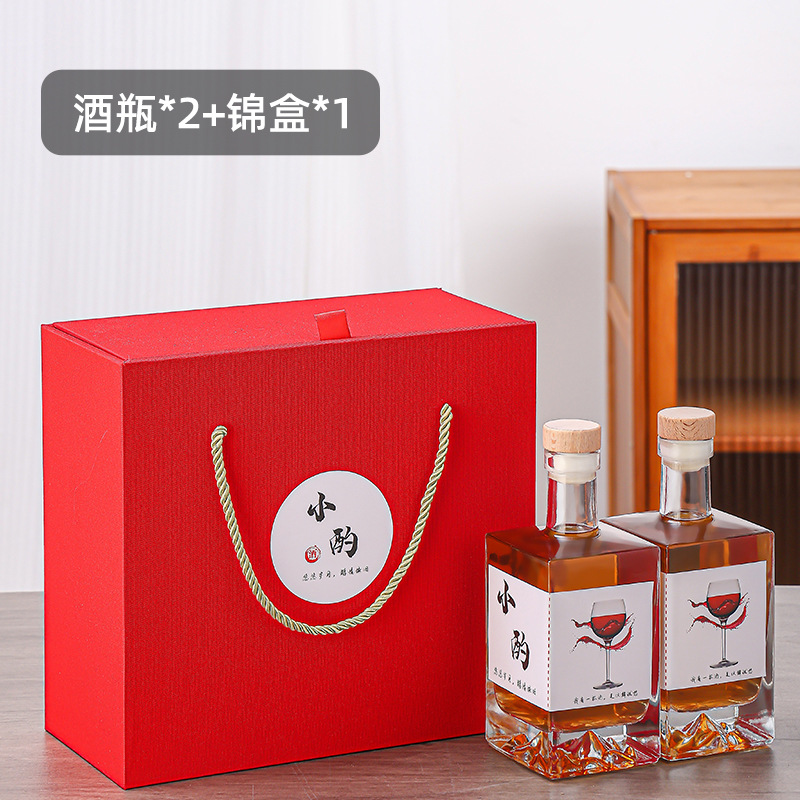 • 750ml 정사각형 병(크리스탈 캡) 빨간색 선물 상자, 2병, 트레이싱 라벨, 무료 깔때기