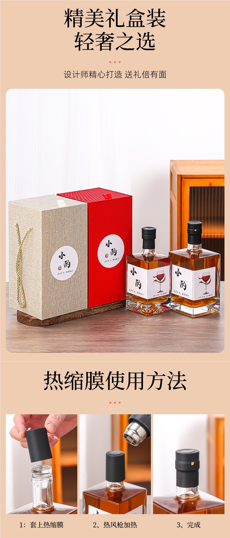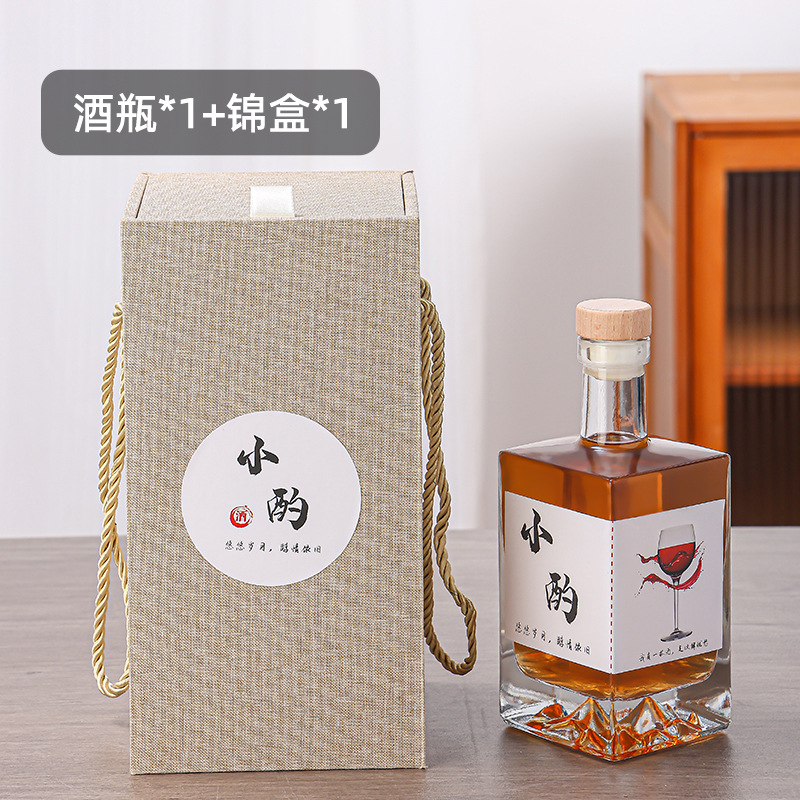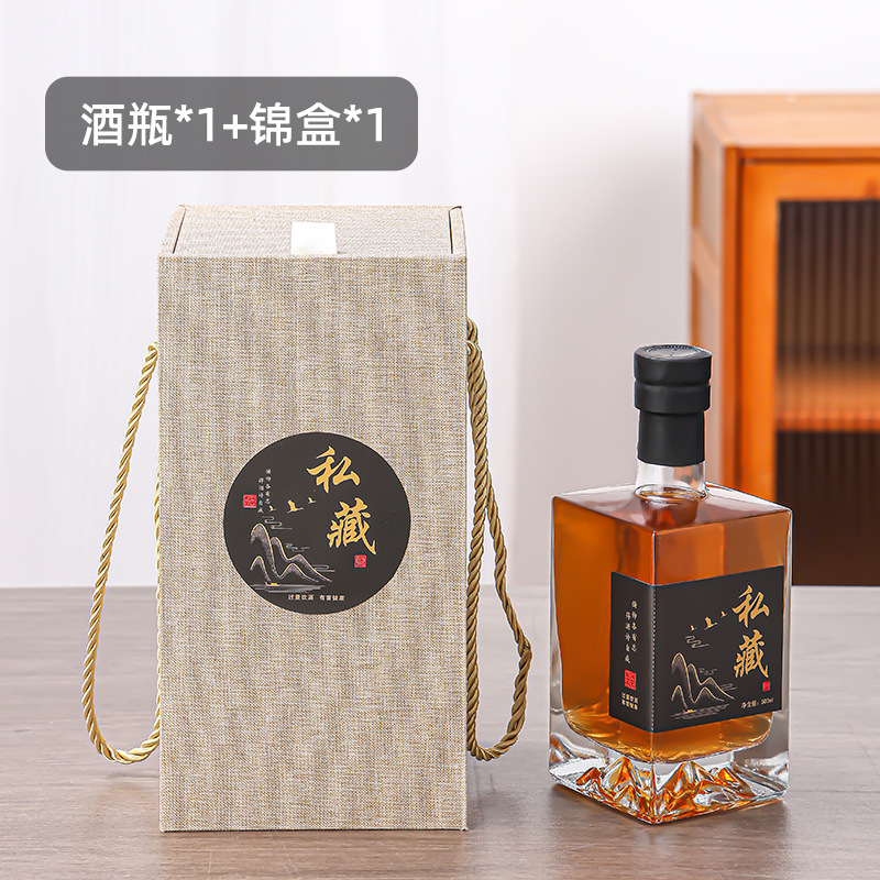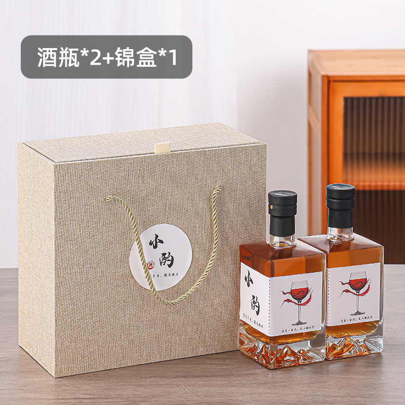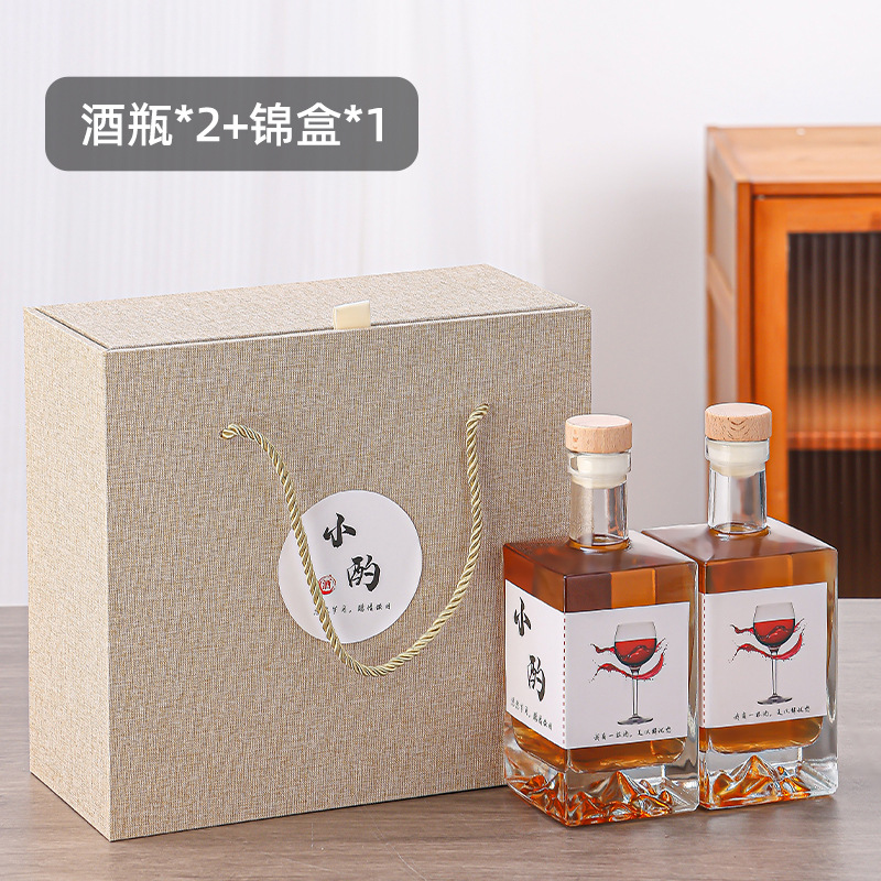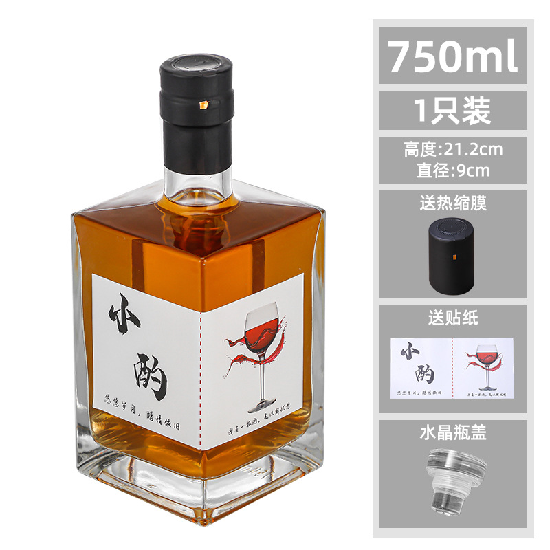 • 750ml 정사각형 병(크리스탈 캡) 빨간색 선물 상자, 2병, 트레이싱 라벨, 무료 깔때기