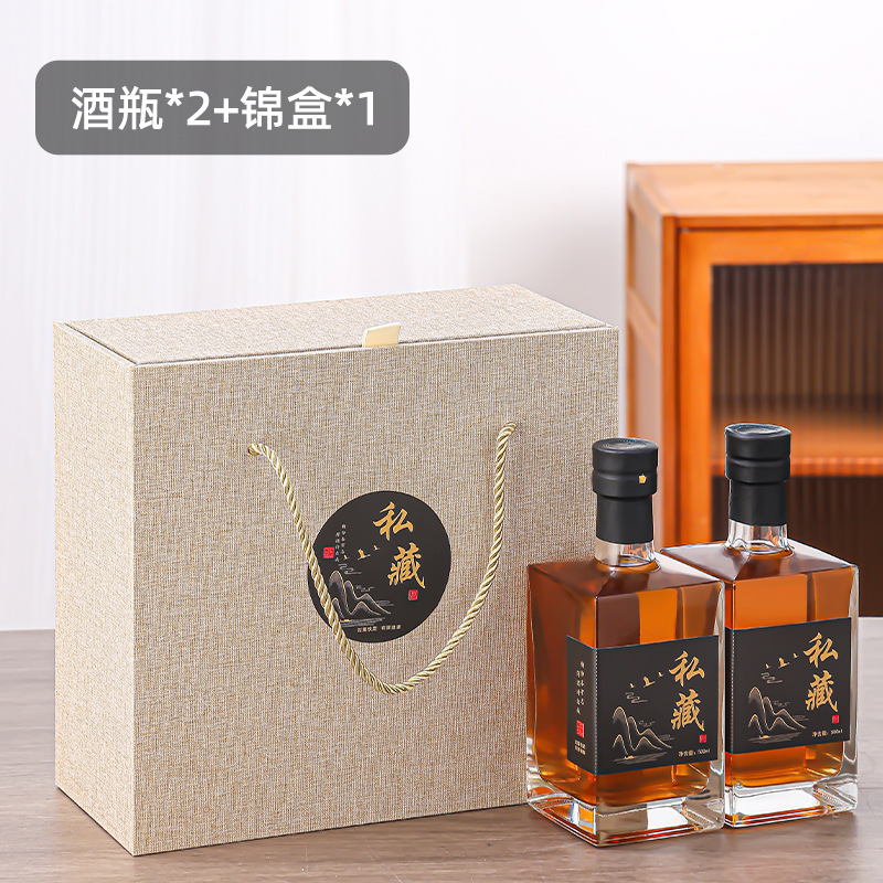 • 750ml 사각병(크리스탈캡) 베이지 선물박스 2병, 소량라벨, 프리깔때기