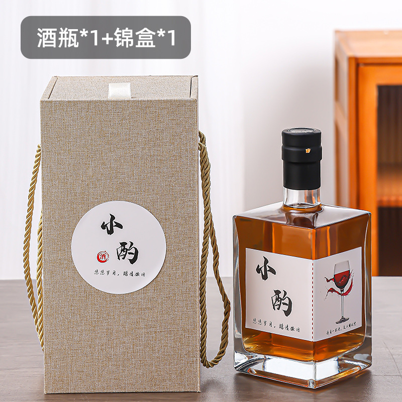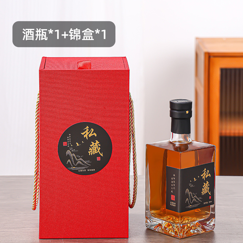 • 750ml 사각병(크리스탈캡) 레드 브로케이드 박스 1병, 레시피 라벨, 무료 깔때기