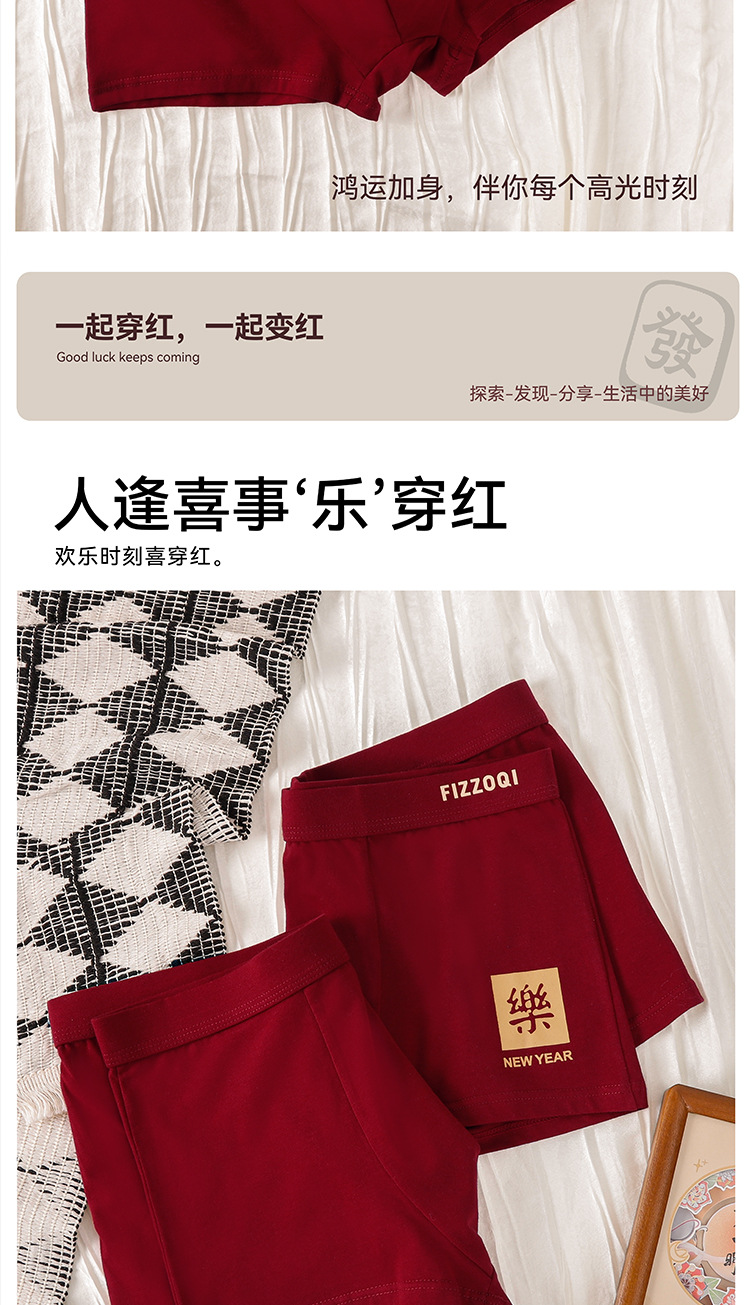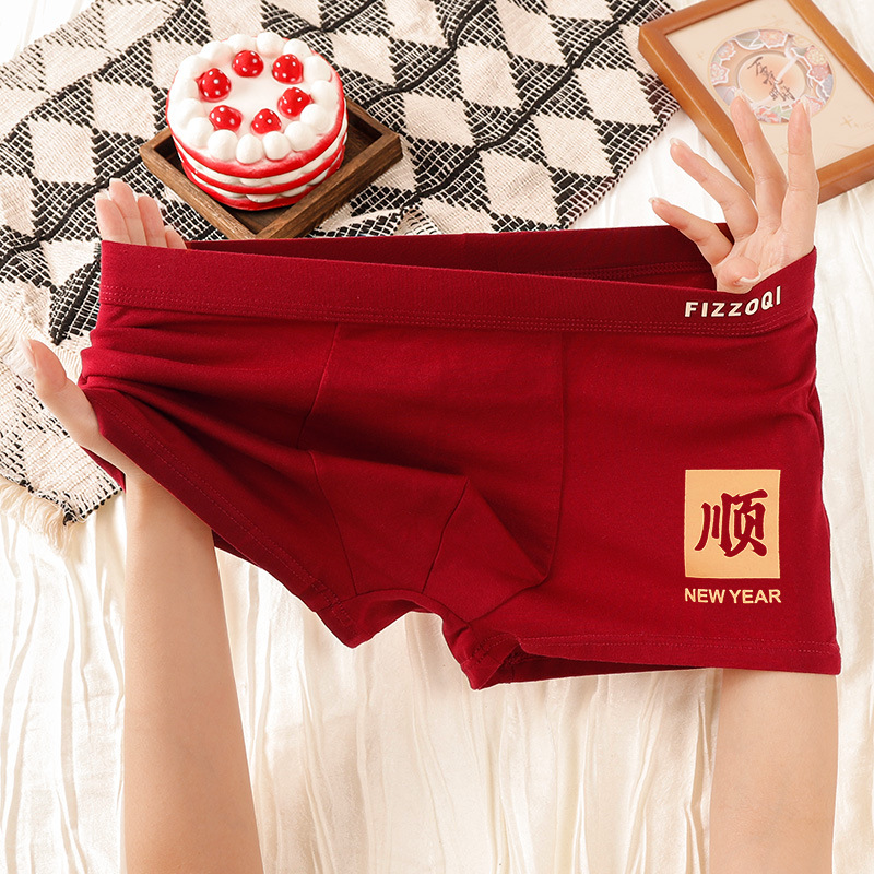 뉴 브닝 니안 남자 버건디 속옷 남자 퓨어 코튼 복서 하이 엔드 페스티벌 복서 반바지 머리 반바지스토어 가기