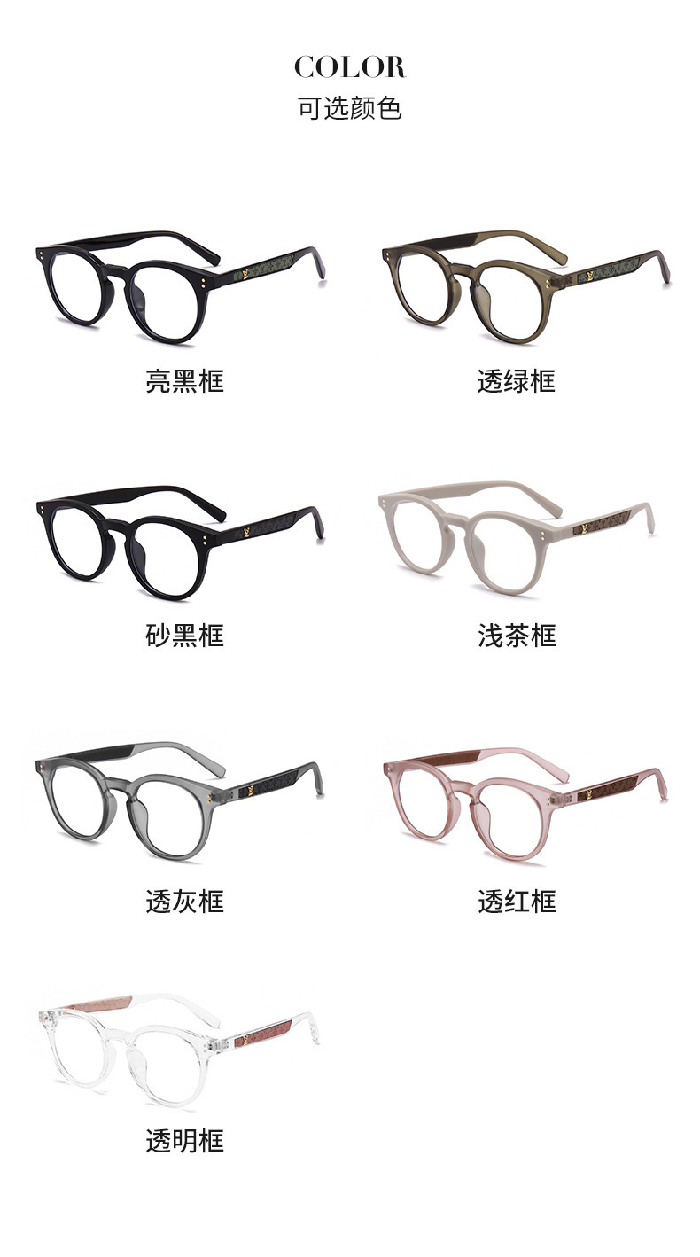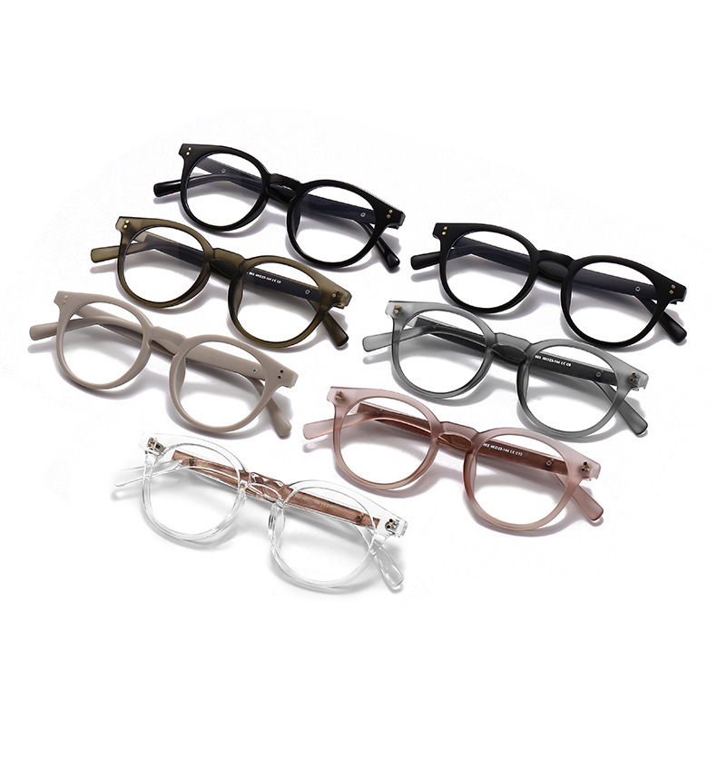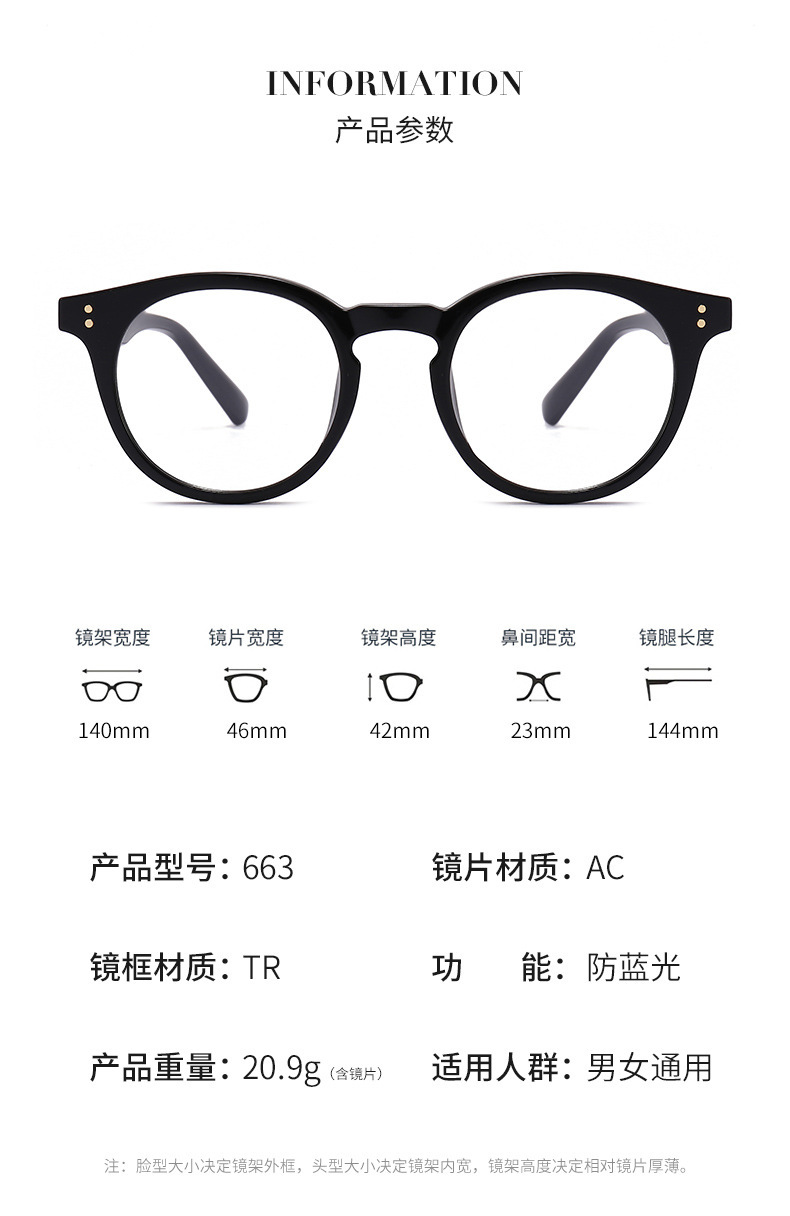 남성과 여성을위한 새로운 안티 블루 라이트 안경 프레임 TR90 라운드 남성과 여성 안경 일반 가죽 패션 평면 안경 프레임
