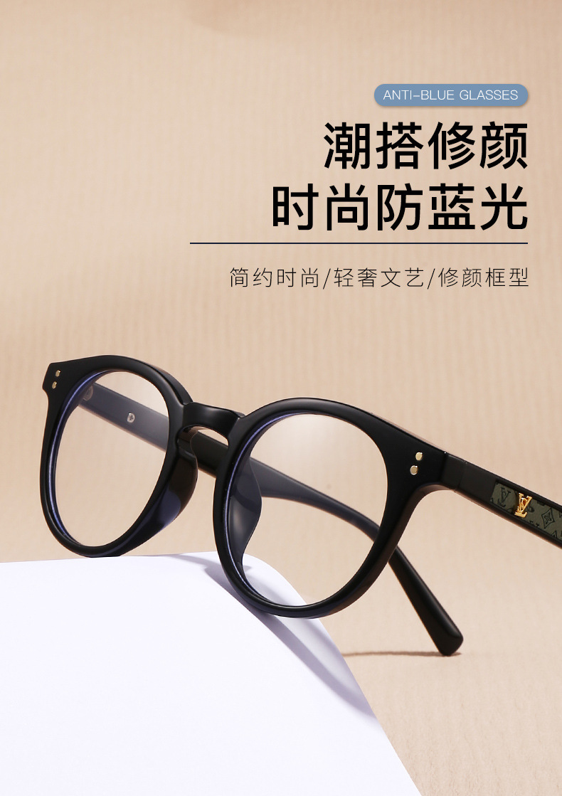 남성과 여성을위한 새로운 안티 블루 라이트 안경 프레임 TR90 라운드 남성과 여성 안경 일반 가죽 패션 평면 안경 프레임스토어 가기