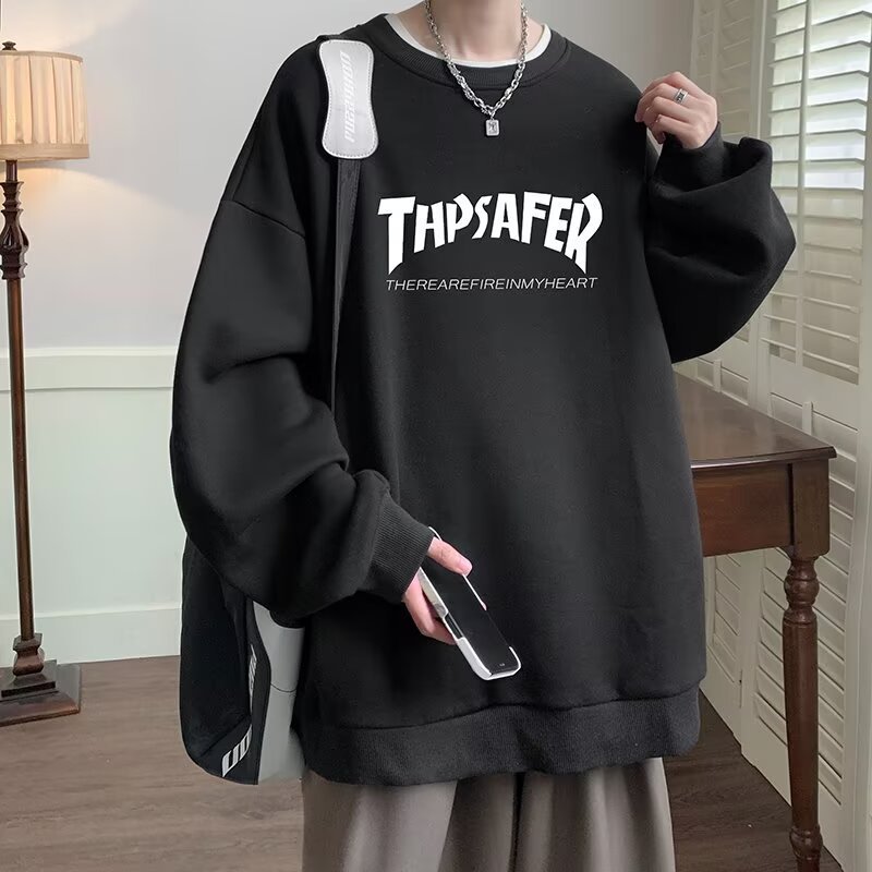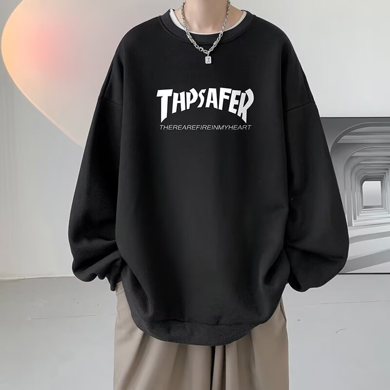 미국 스타일의 트렌디 한 브랜드 레터 스웨트 셔츠 소년 2024 봄과 가을 새로운 느슨한 라운드 넥 탑 겨울 홍콩 스타일 양털 재킷스토어 가기