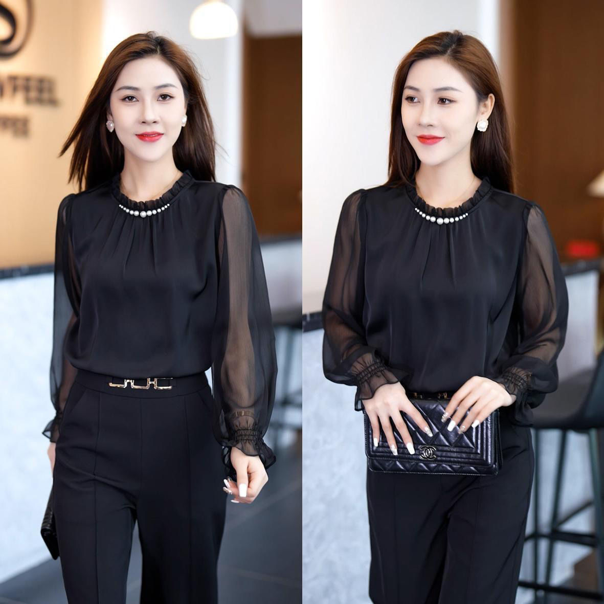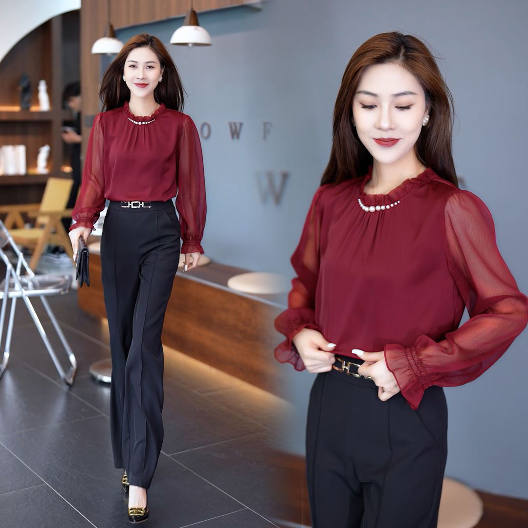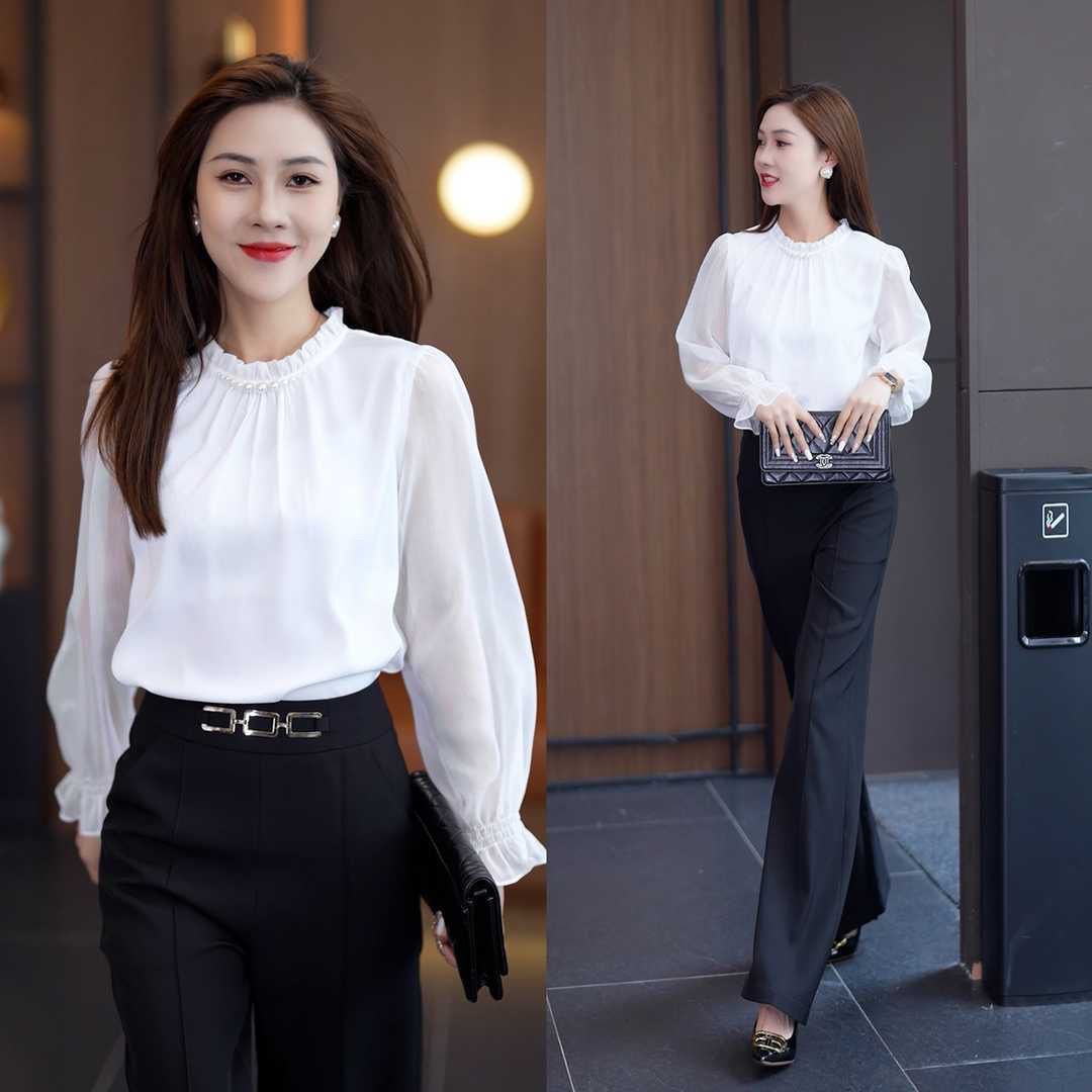 2023 년 가을 새로운 여성 한국식 올매치 긴팔 쉬폰 셔츠 여성 패션 스타일리시 탑 우아한 작은 셔츠