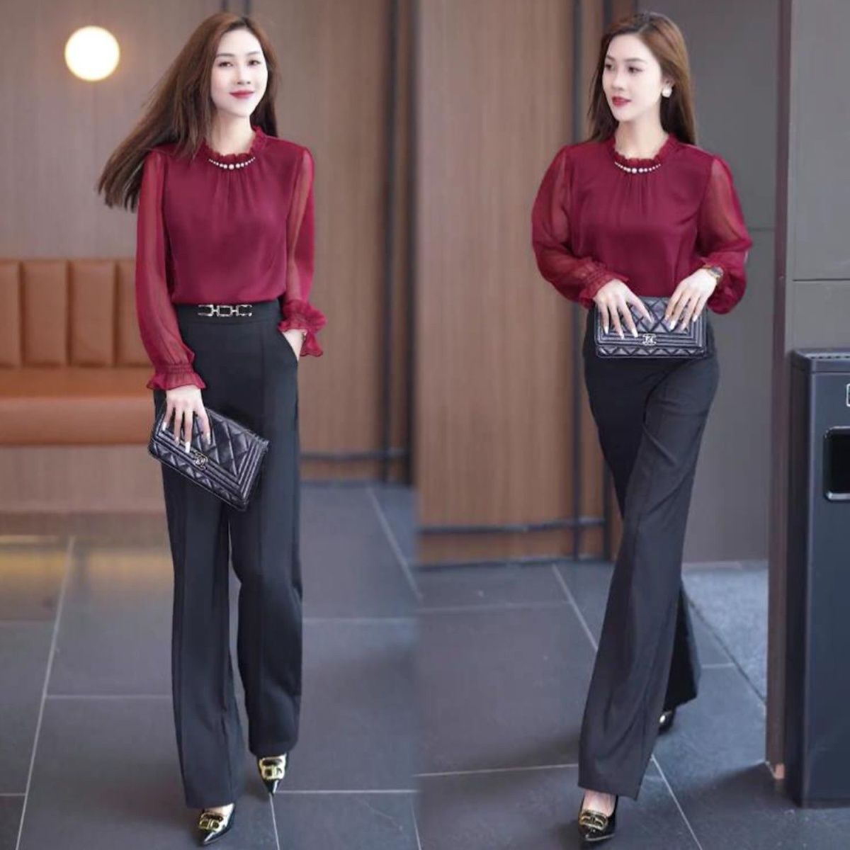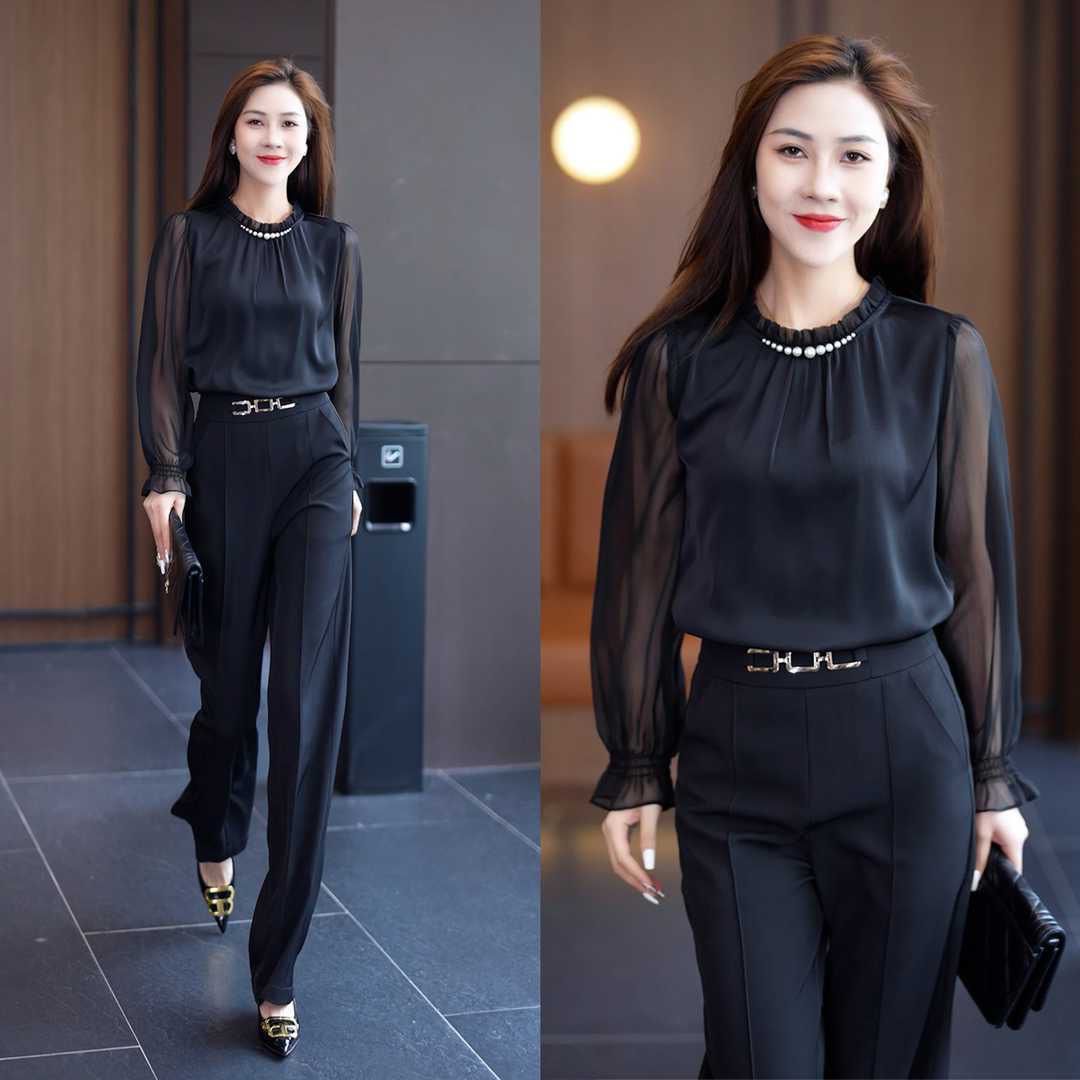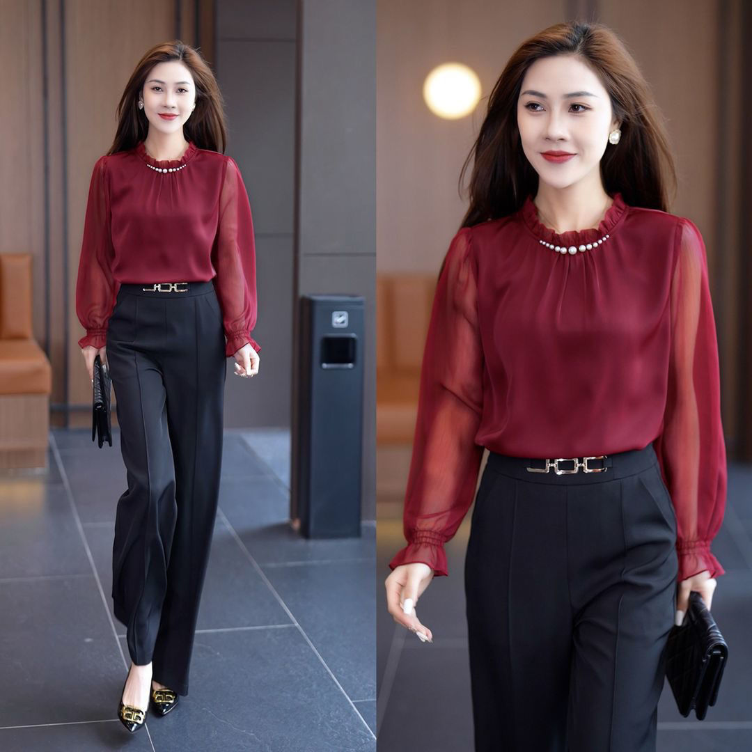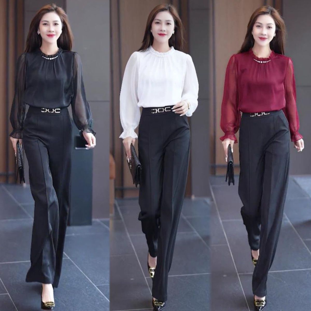 2023 년 가을 새로운 여성 한국식 올매치 긴팔 쉬폰 셔츠 여성 패션 스타일리시 탑 우아한 작은 셔츠