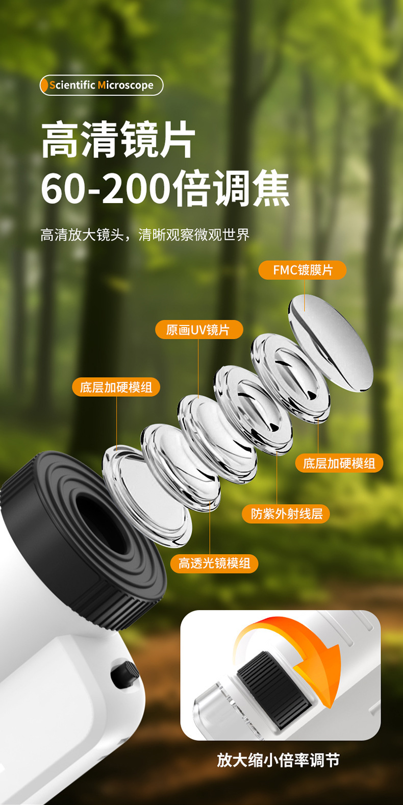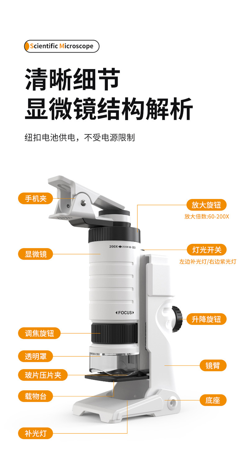 어린이 현미경 휴대용 휴대용 과학 실험 세트 야외 특수 전문 학생 에디션 교육 완구스토어 가기