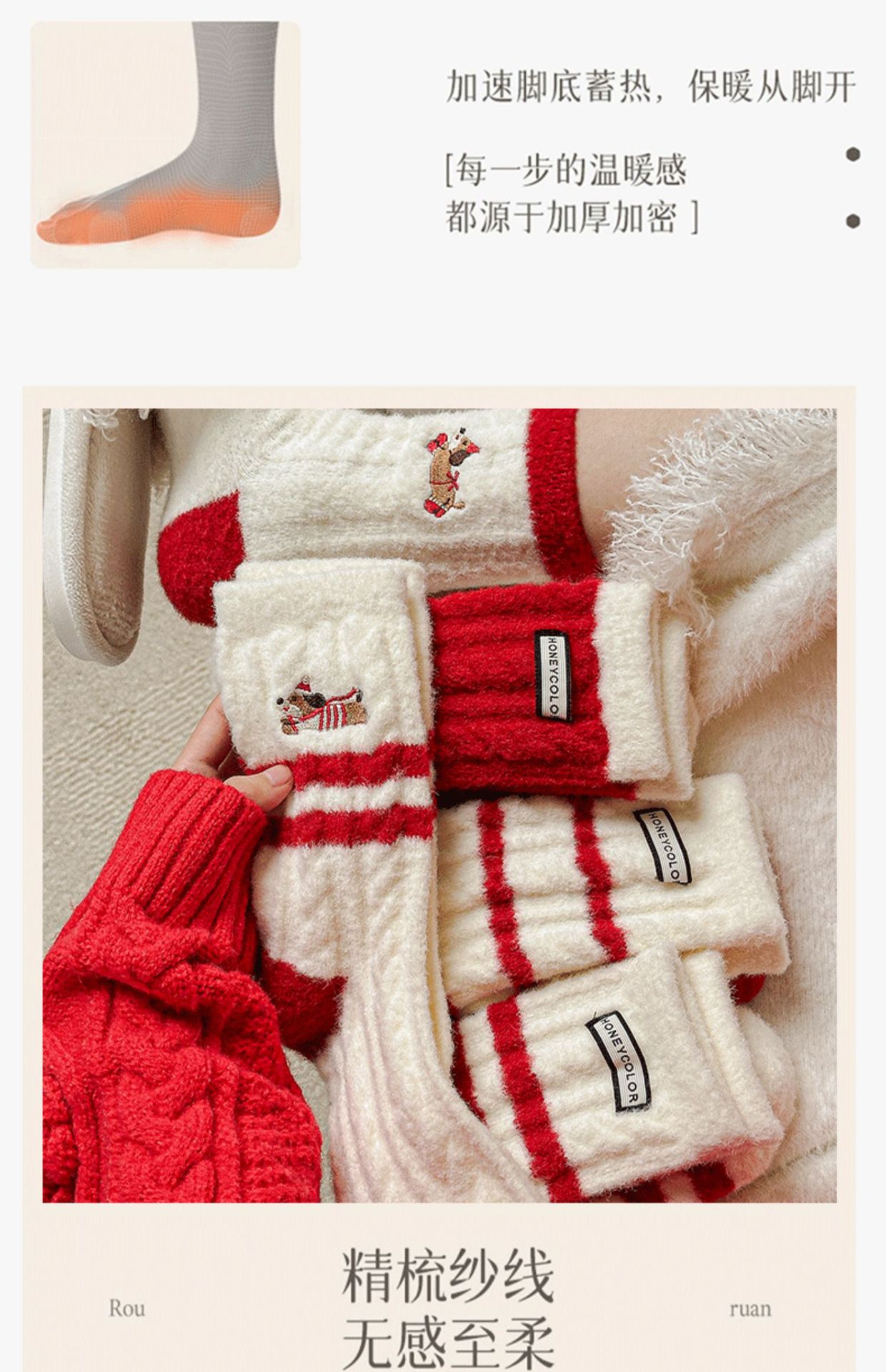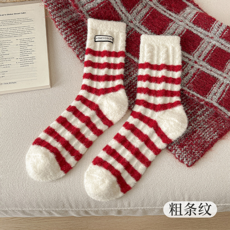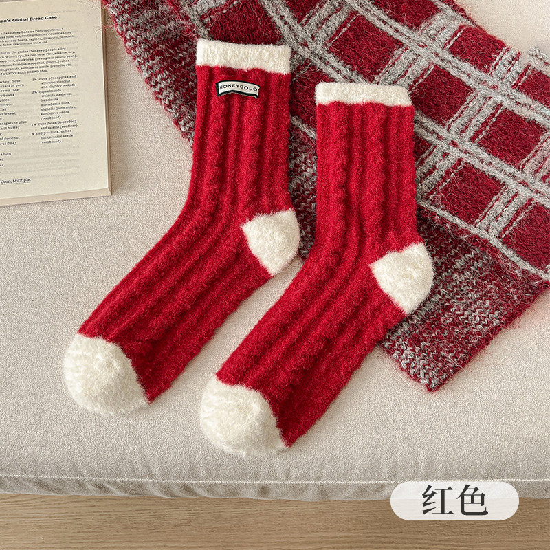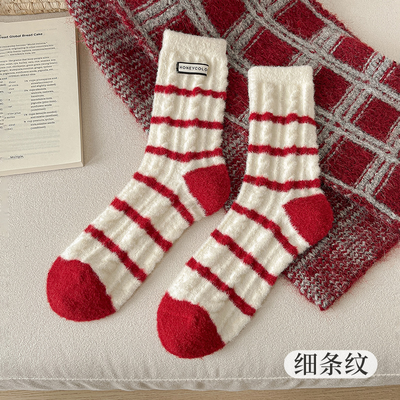큰 빨간 양말 여성의 가을과 겨울 크리스마스 두꺼운 따뜻한 산호 양털 바닥 겨울 수면 양말스토어 가기