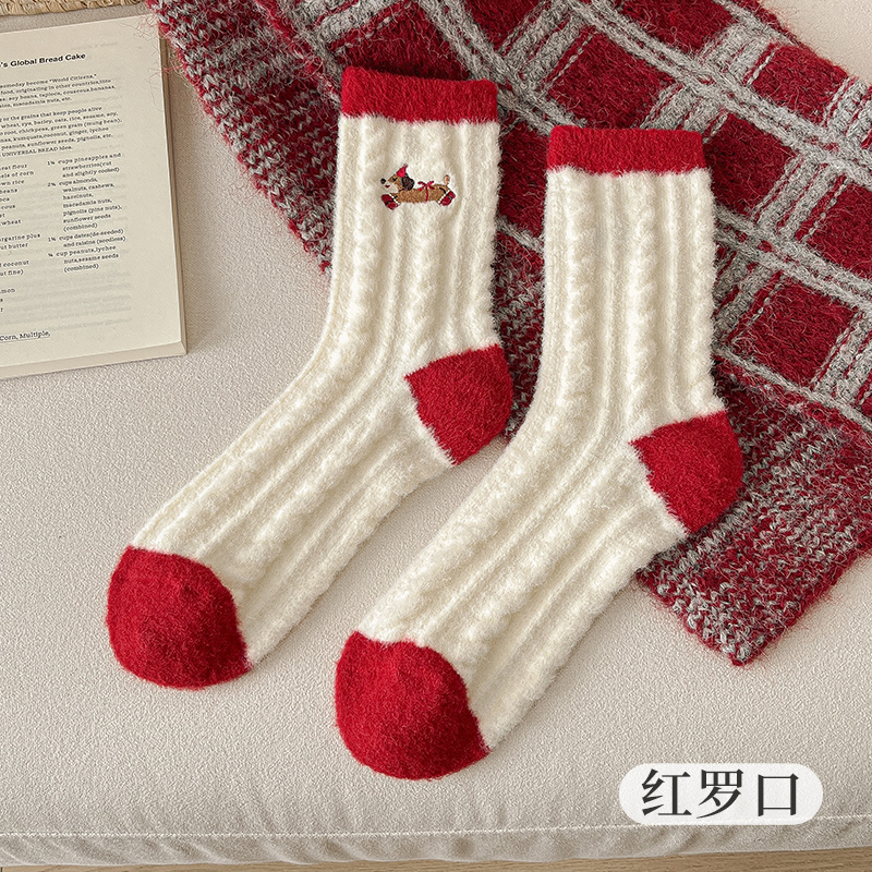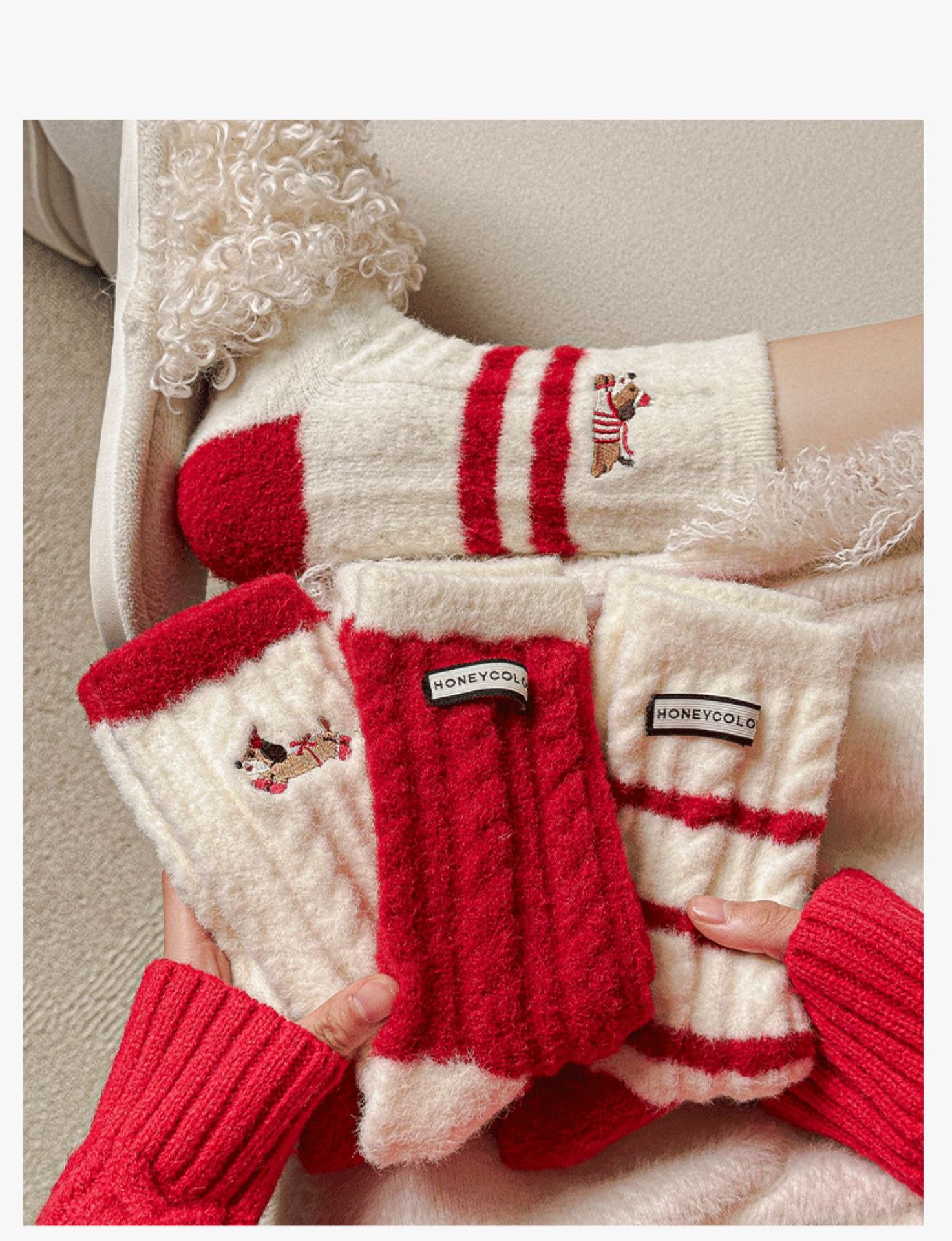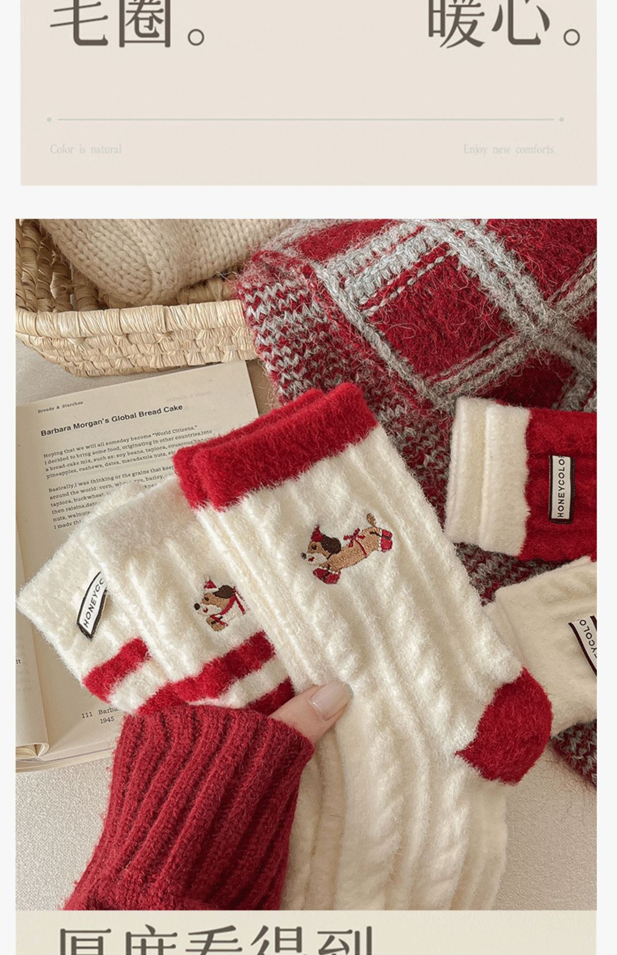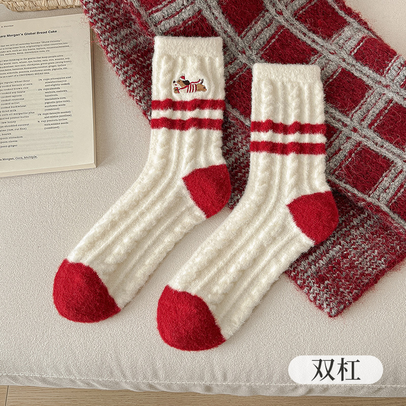 큰 빨간 양말 여성의 가을과 겨울 크리스마스 두꺼운 따뜻한 산호 양털 바닥 겨울 수면 양말스토어 가기