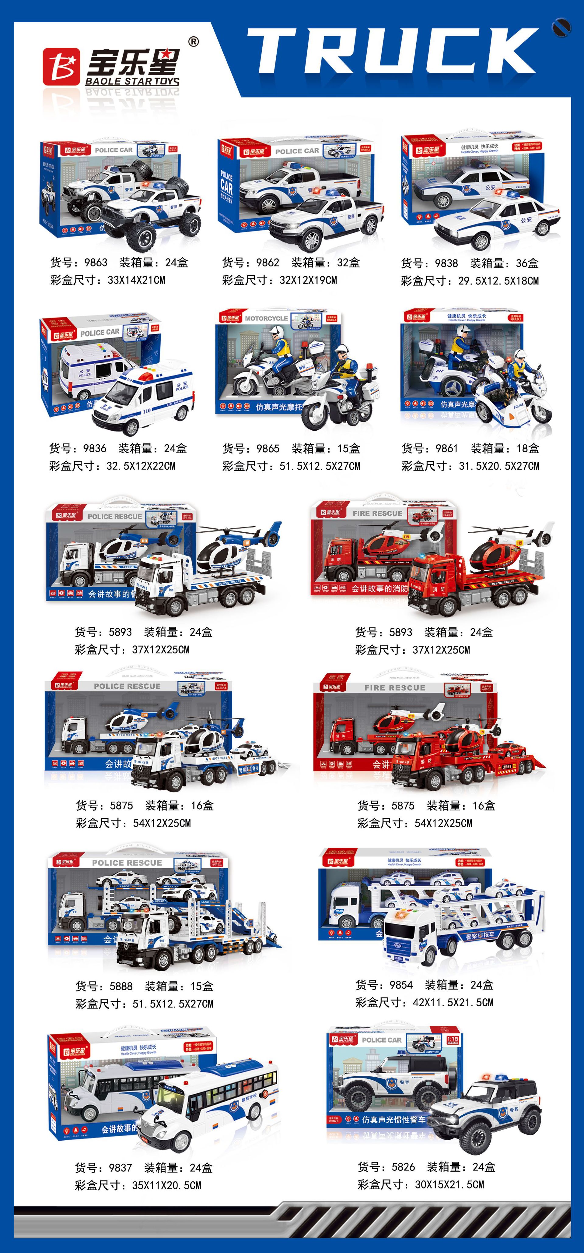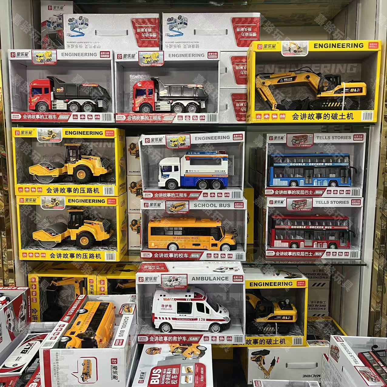 Baole Star Light Music Story 자동차 엔지니어링 자동차 화재 경찰 자동차 학교 버스 탱크 오프로드 차량 조기 교육 모델 장난감스토어 가기