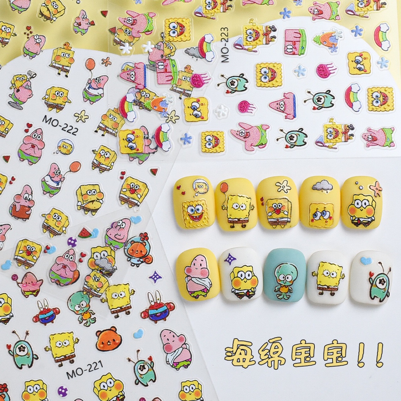 귀여운 만화 스폰지 밥 스폰지 밥 패트릭 3D 네일 아트 스티커 학생 높은 색상 가치 스테레오 릴리프 접착제 도매