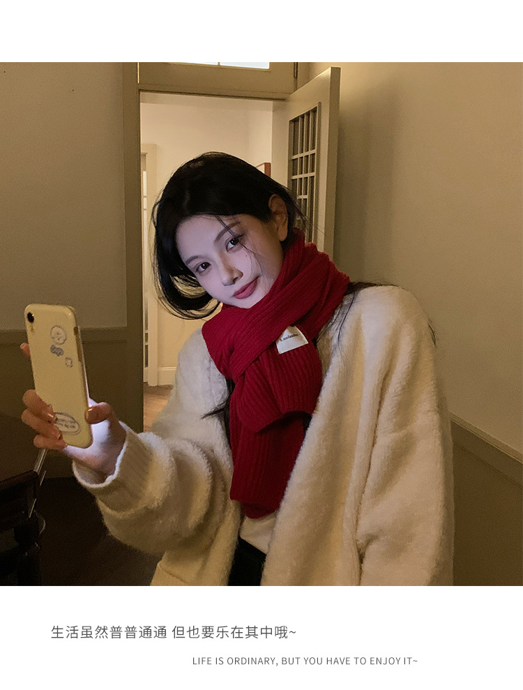 레드 스카프 여성의 겨울 2024 새로운 가을과 겨울 한국 스타일 분위기 남성과 여성을위한 센스 크리스마스 스카프스토어 가기