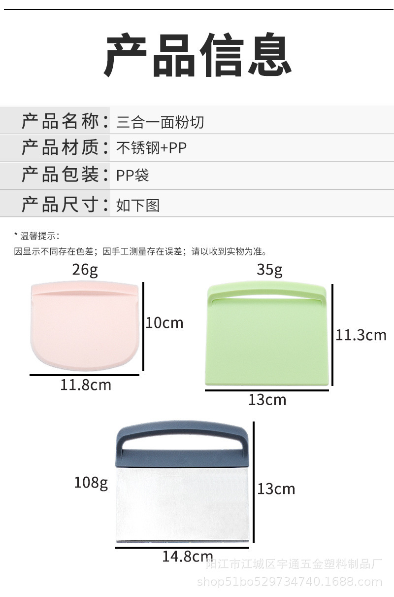 공장 도매 새로운 3 대 1 절단 칼 스테인레스 스틸 반죽 절단 밀가루 스크래핑 3 피스 베이킹 크림 스크레이퍼스토어 가기