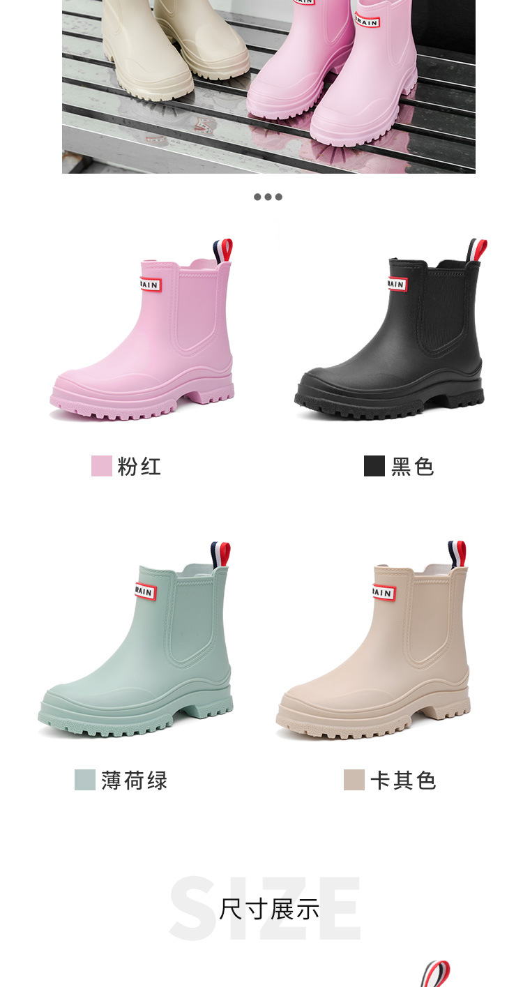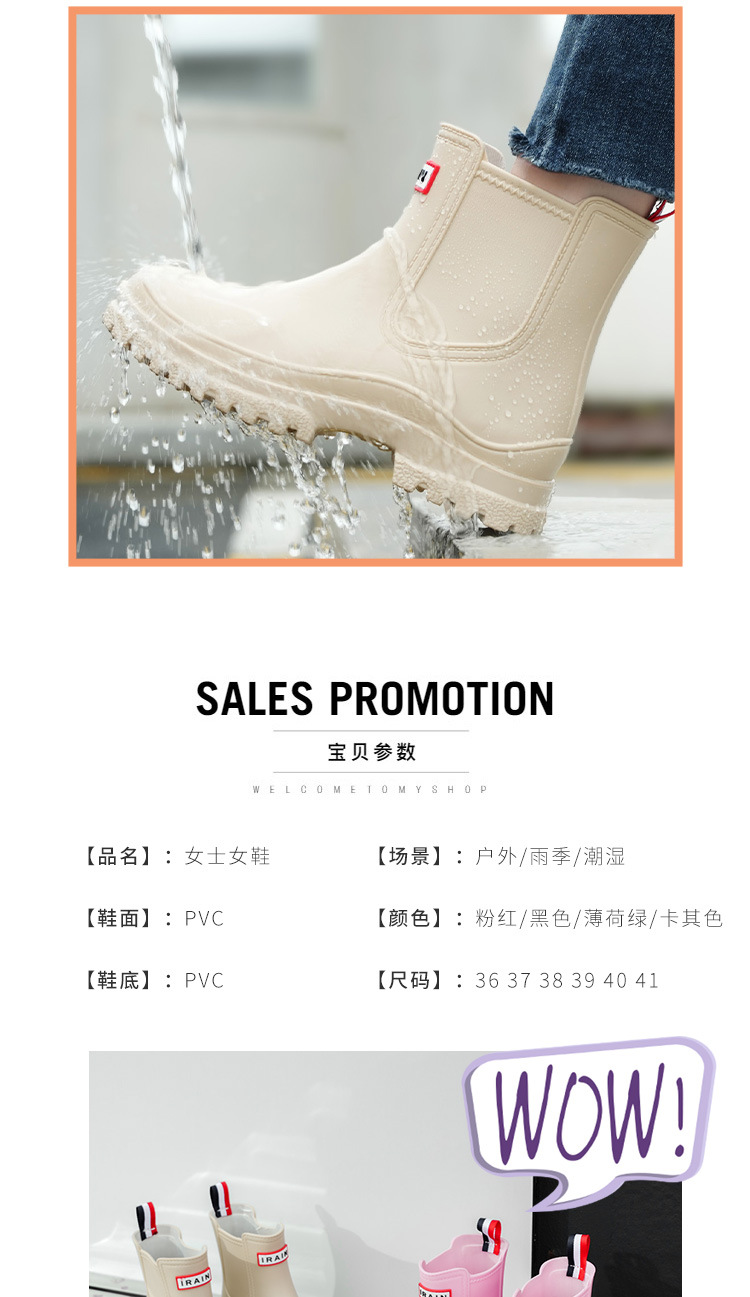 국경 간 여성용 짧은 미끄럼 비 장화 PVC 일회용 워터 부츠 봄 및 여름 방수 신발 유럽 사이즈 로우 탑 레인 부츠