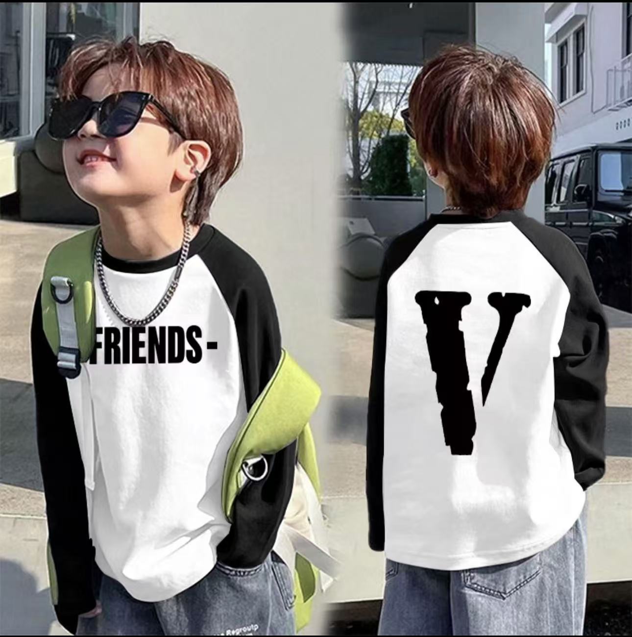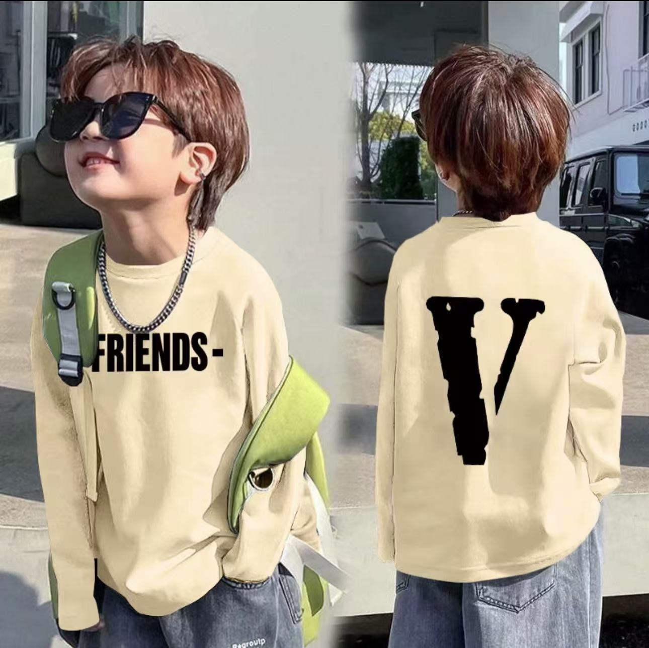 봄과 가을 새로운 100 면 어린이 올 매치 긴팔 티셔츠 남학생 유행 편지 인쇄 라운드 넥 베이스 탑