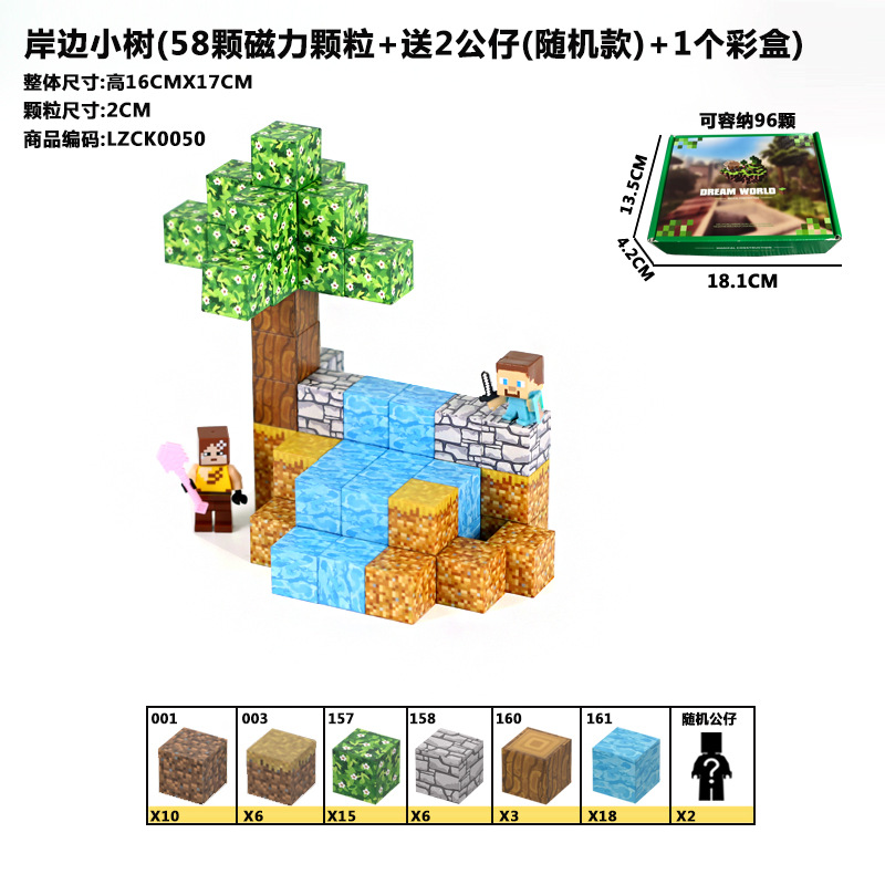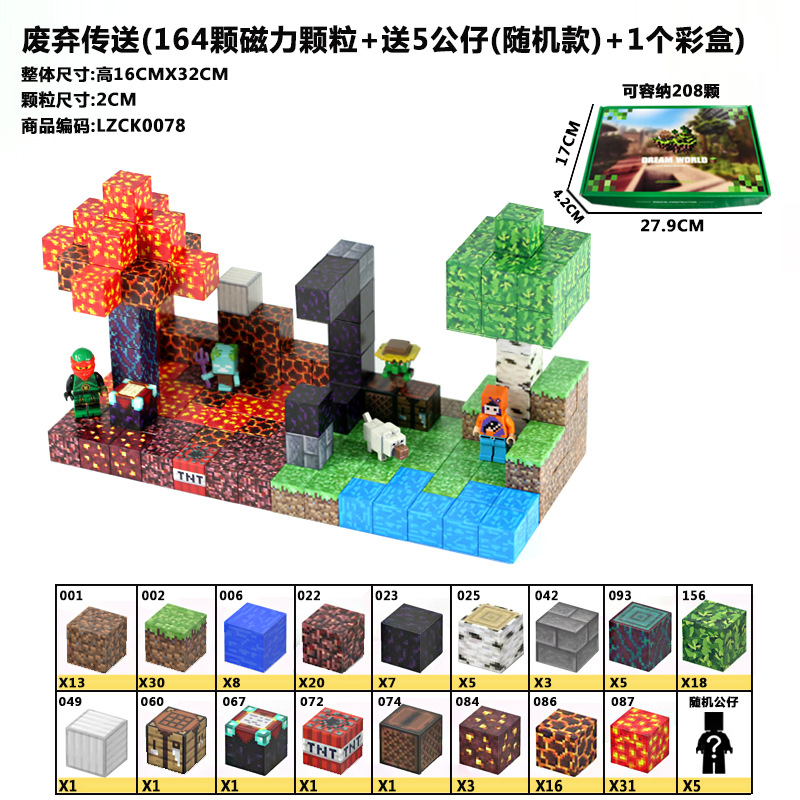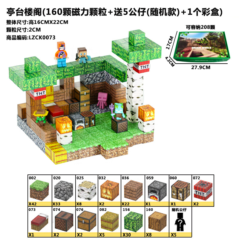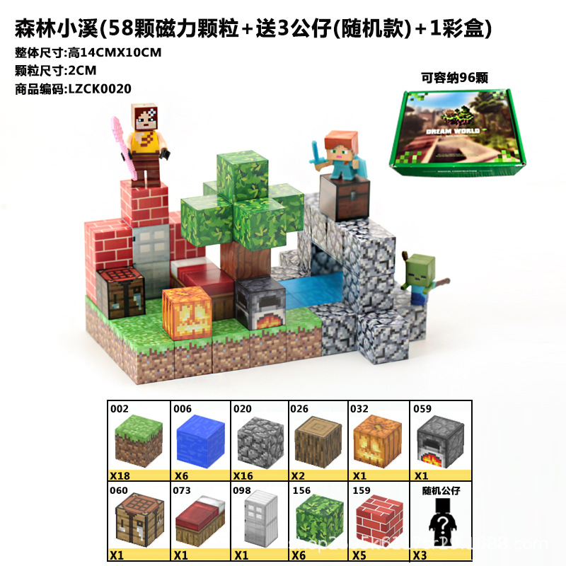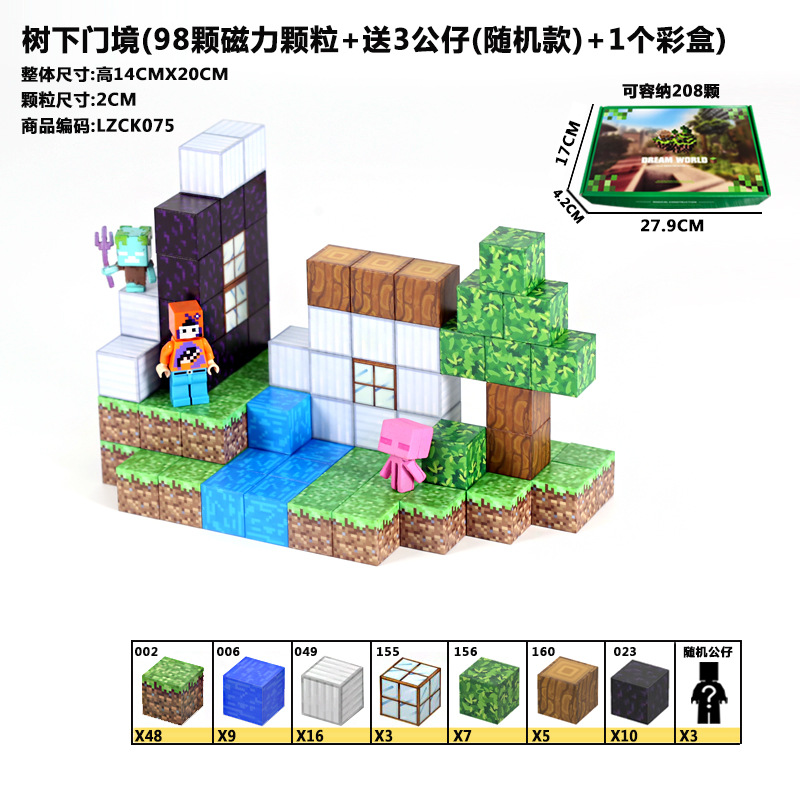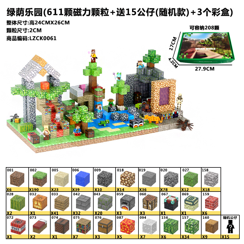 내 세계 마그네틱 스퀘어 마그네틱 아이언 빌딩 블록 전체 세트 조립 mc 자기 흡수 마그네틱 보이즈 장난감 그린 소나무 바다