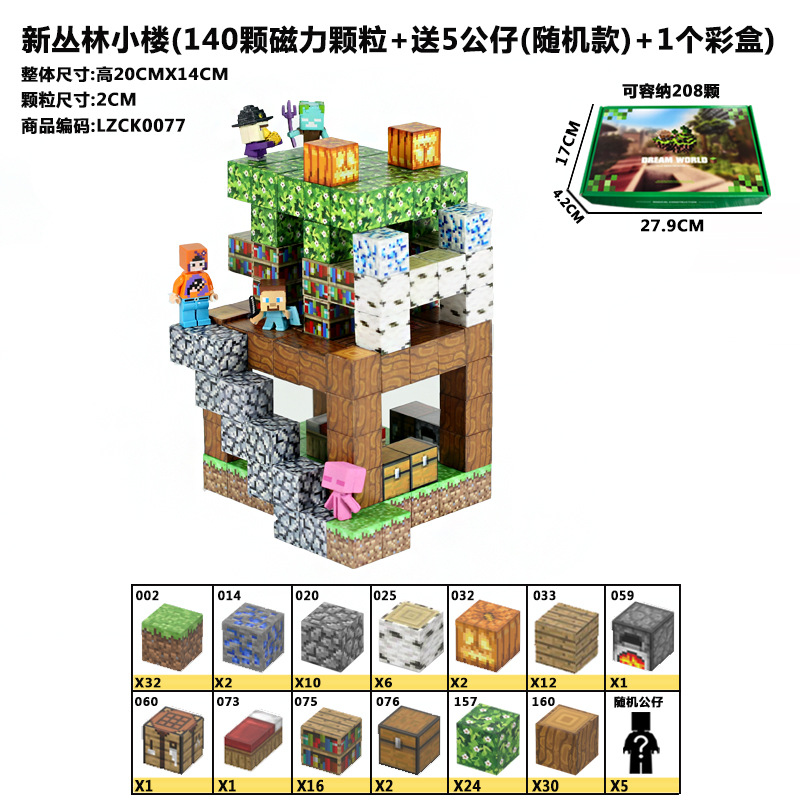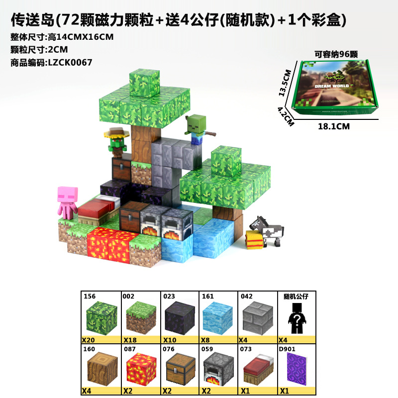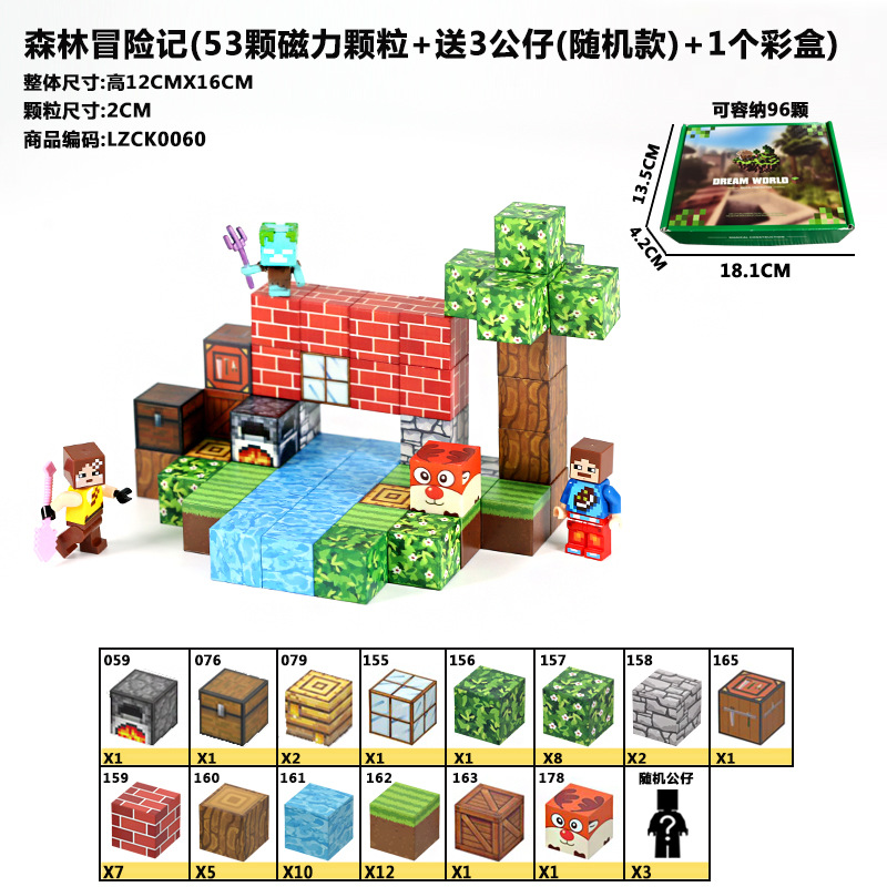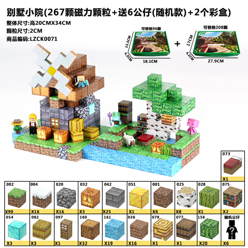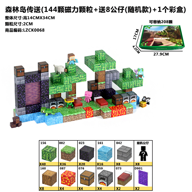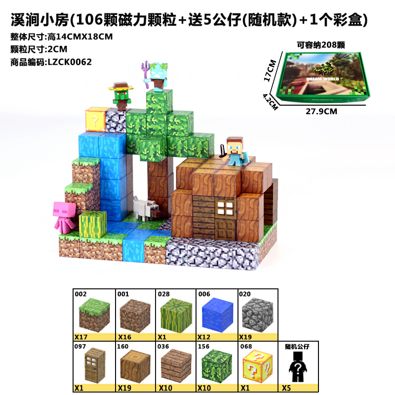 내 세계 마그네틱 스퀘어 마그네틱 아이언 빌딩 블록 전체 세트 조립 mc 자기 흡수 마그네틱 보이즈 장난감 그린 소나무 바다