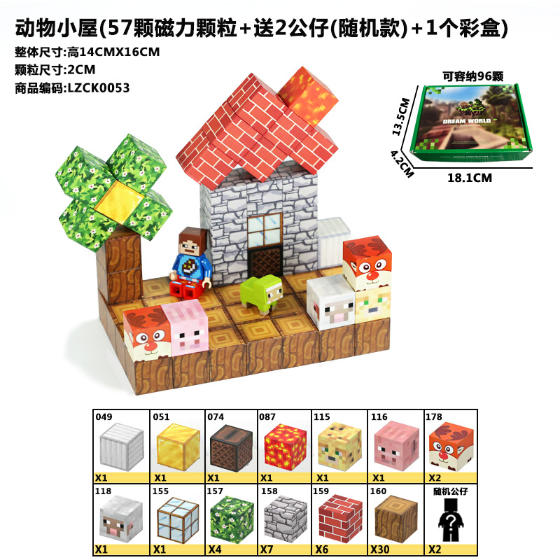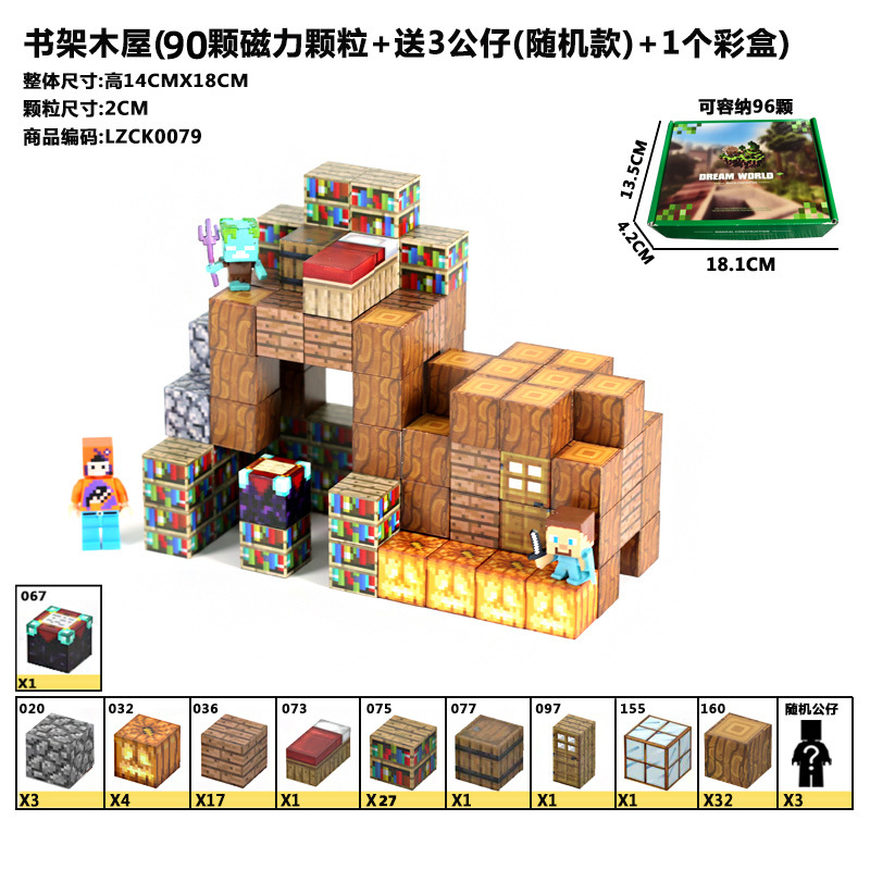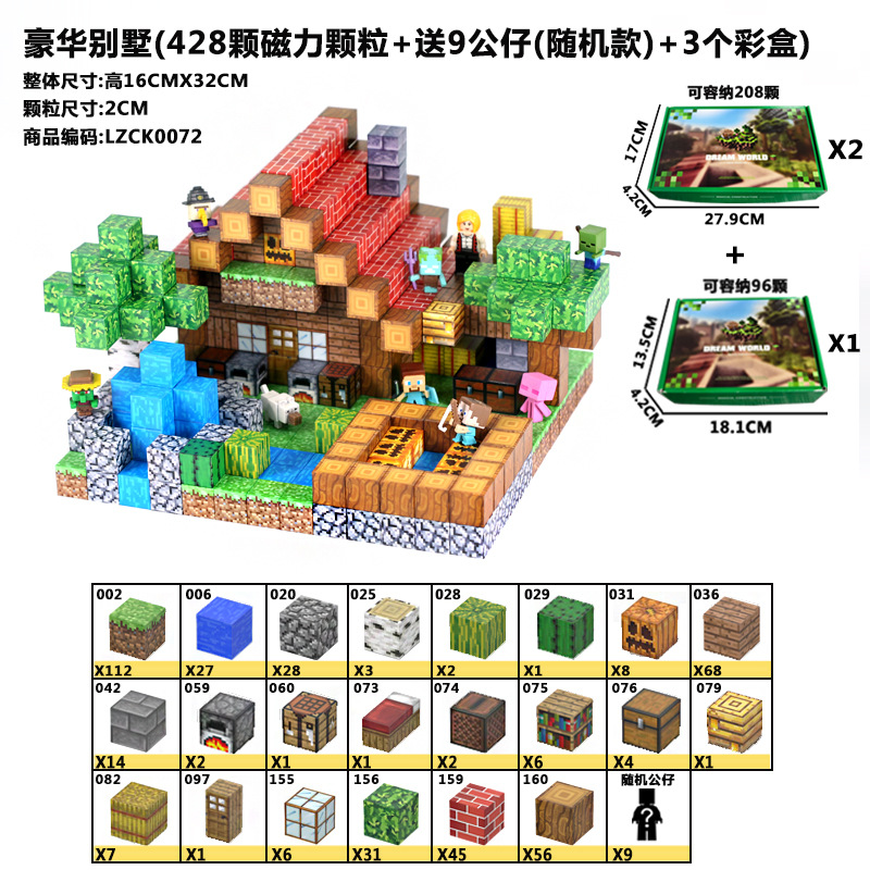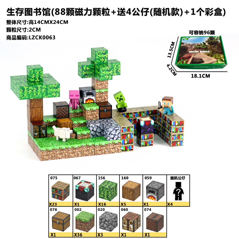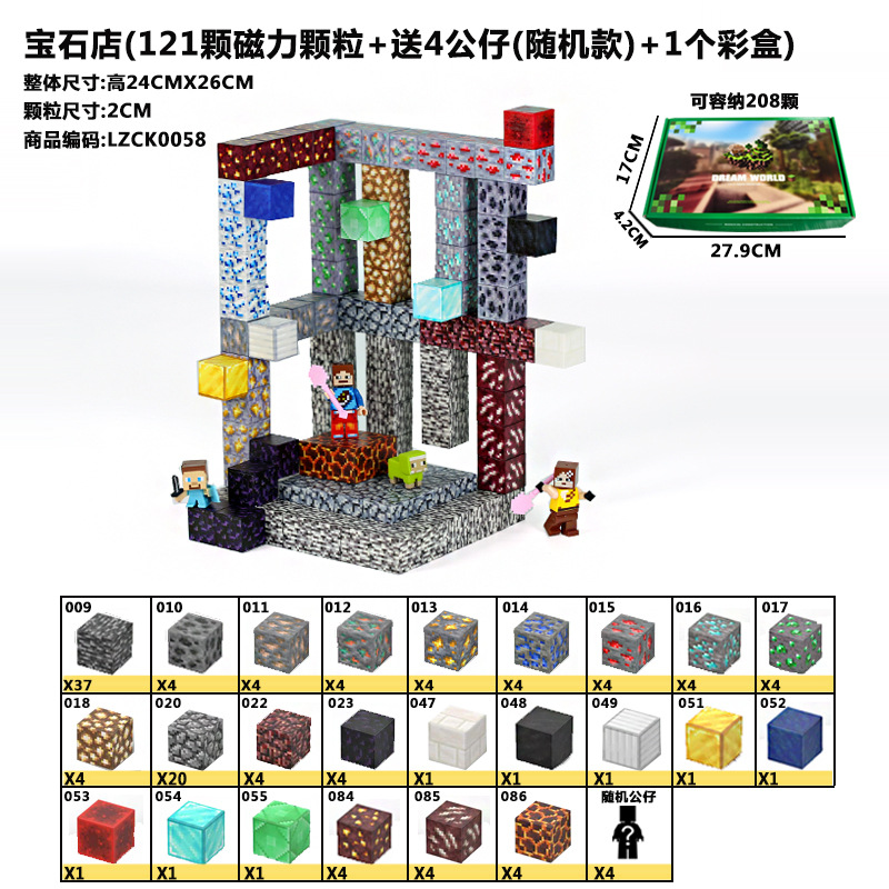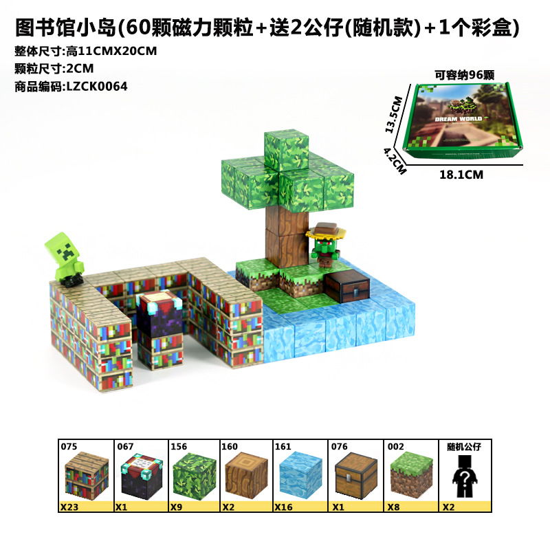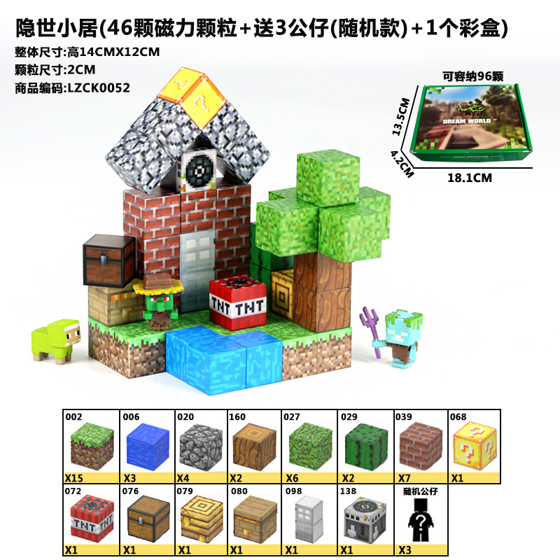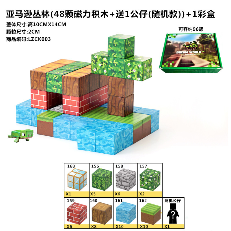 내 세계 마그네틱 스퀘어 마그네틱 아이언 빌딩 블록 전체 세트 조립 mc 자기 흡수 마그네틱 보이즈 장난감 그린 소나무 바다스토어 가기