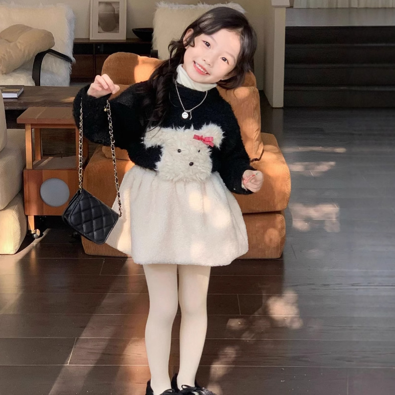 소녀 2024 겨울 새로운 한국식 입체 강아지 스웨터 활 풀오버 만화 크루 넥 탑