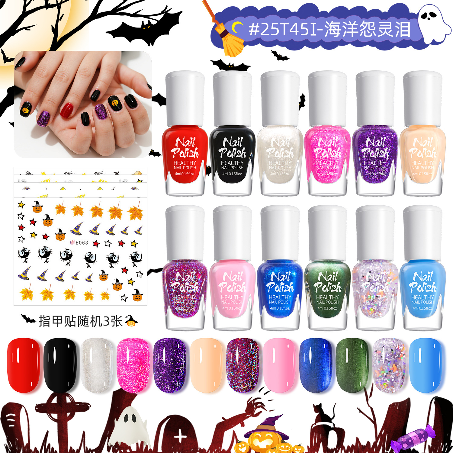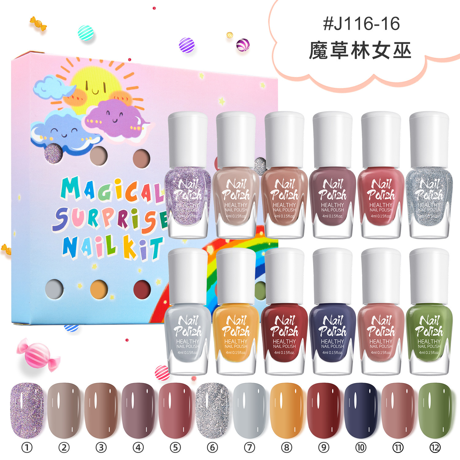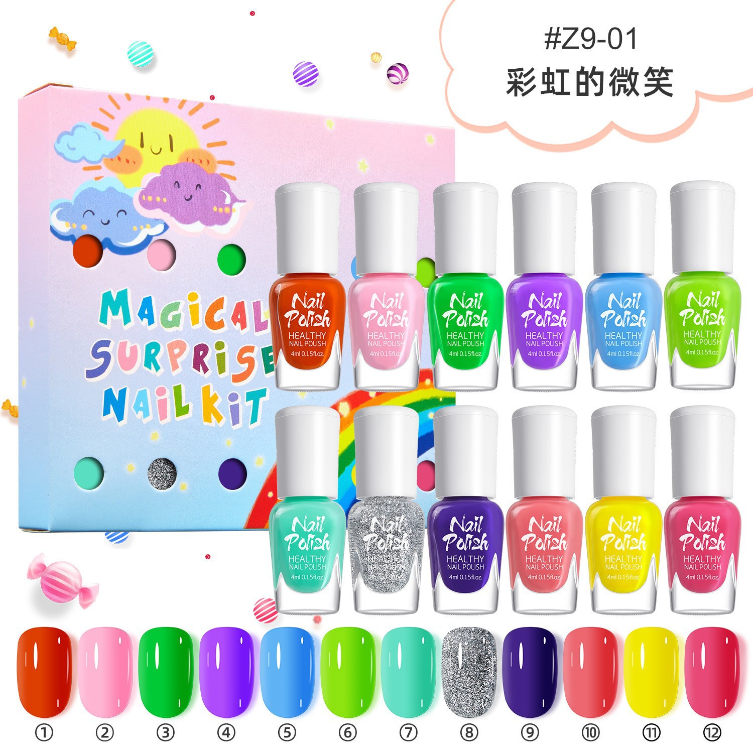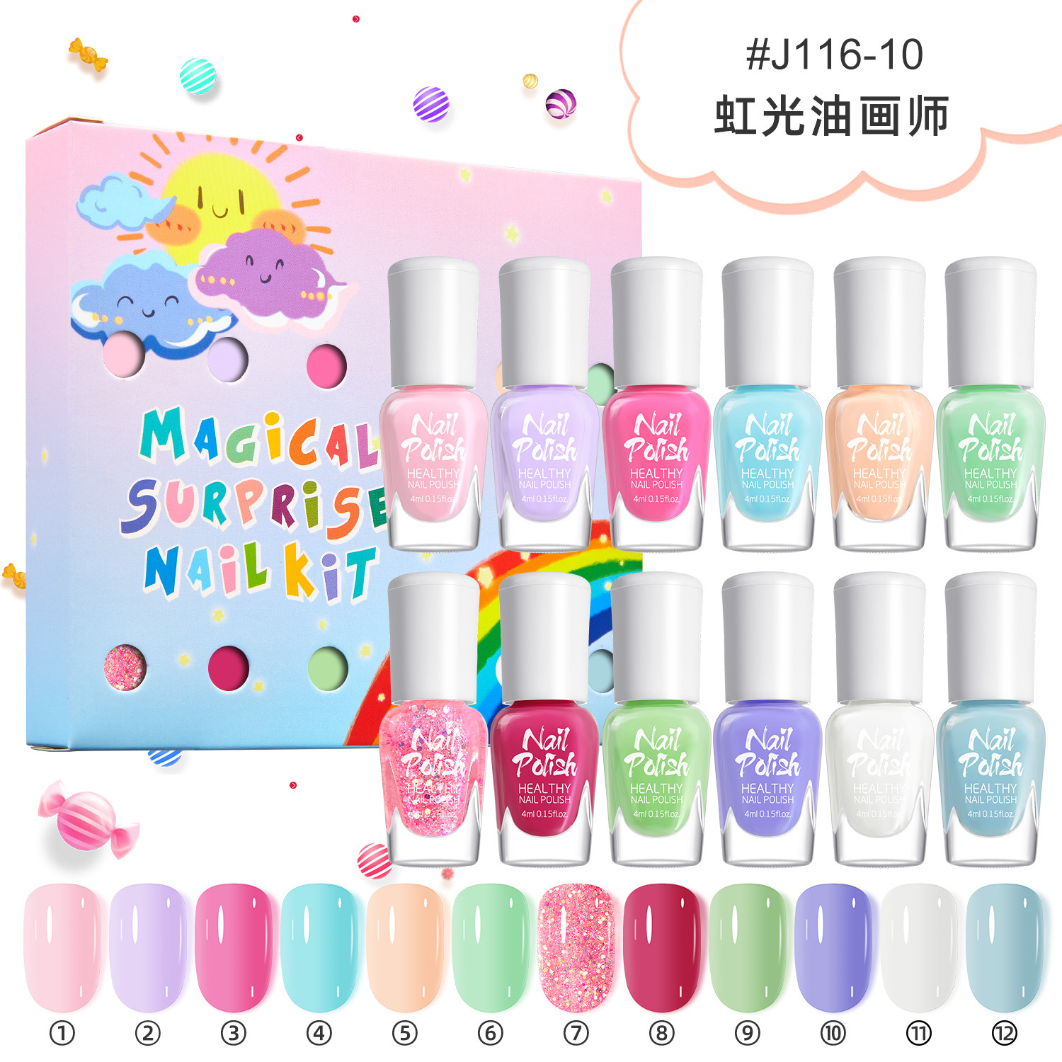 6 컬러 12 컬러 캔디 컬러 환경 친화적 인 어린이 네일 폴란드 세트 껍질을 벗기지 않는 빠른 건조 맛없는 해골 매니큐어 젤스토어 가기