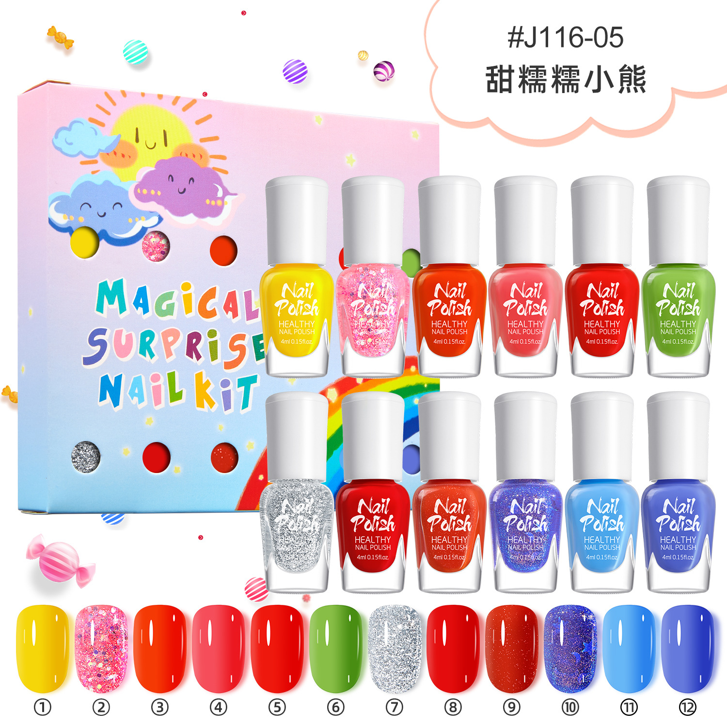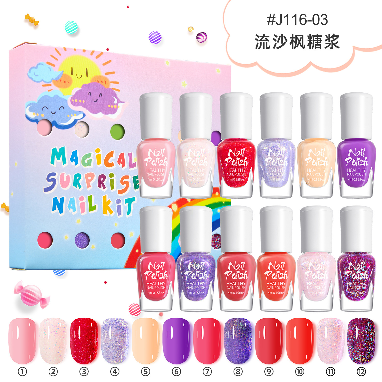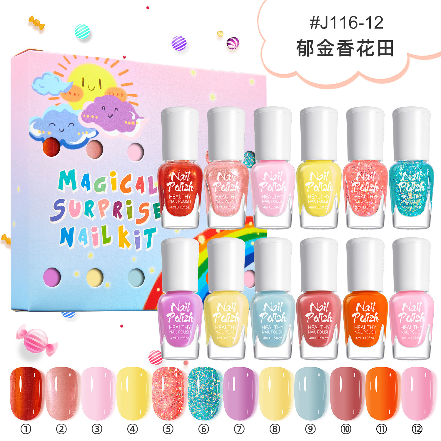 6 컬러 12 컬러 캔디 컬러 환경 친화적 인 어린이 네일 폴란드 세트 껍질을 벗기지 않는 빠른 건조 맛없는 해골 매니큐어 젤
