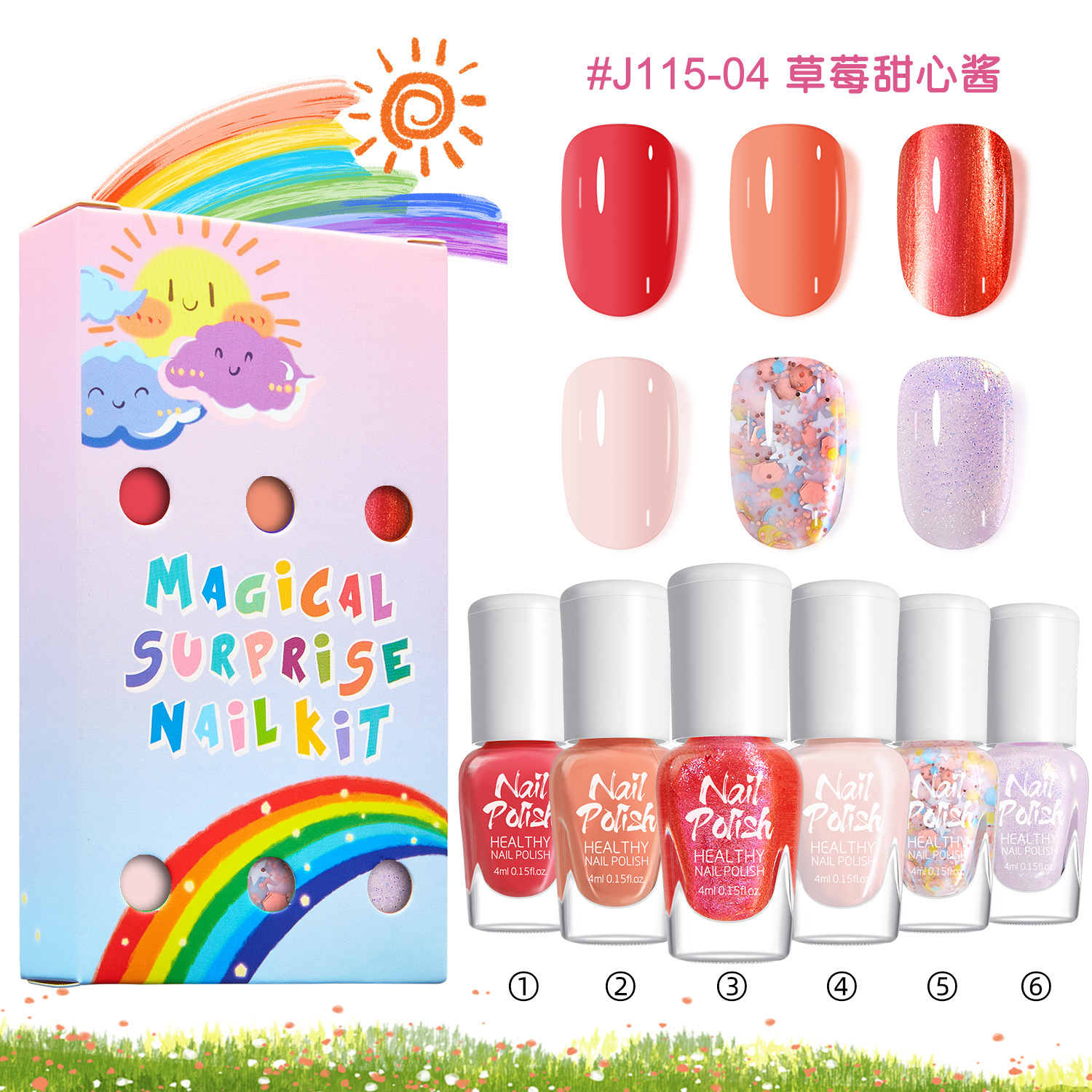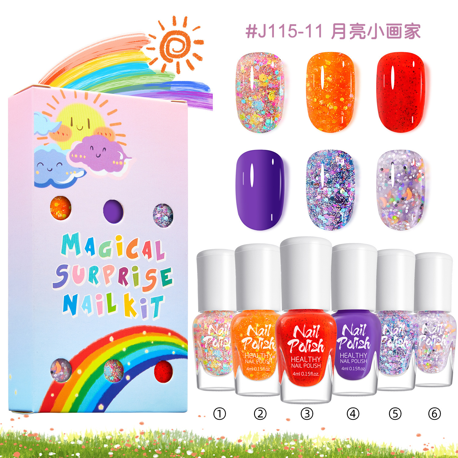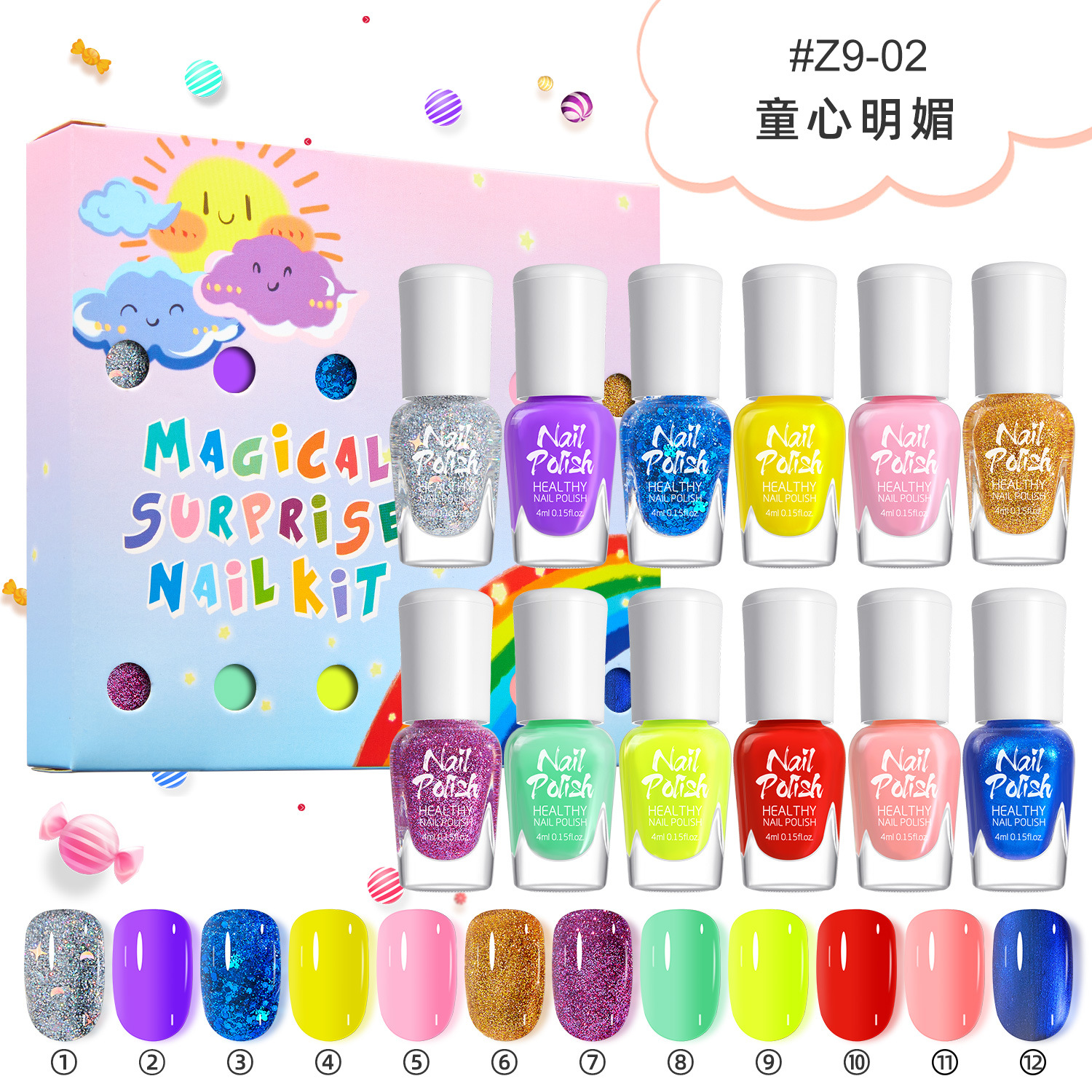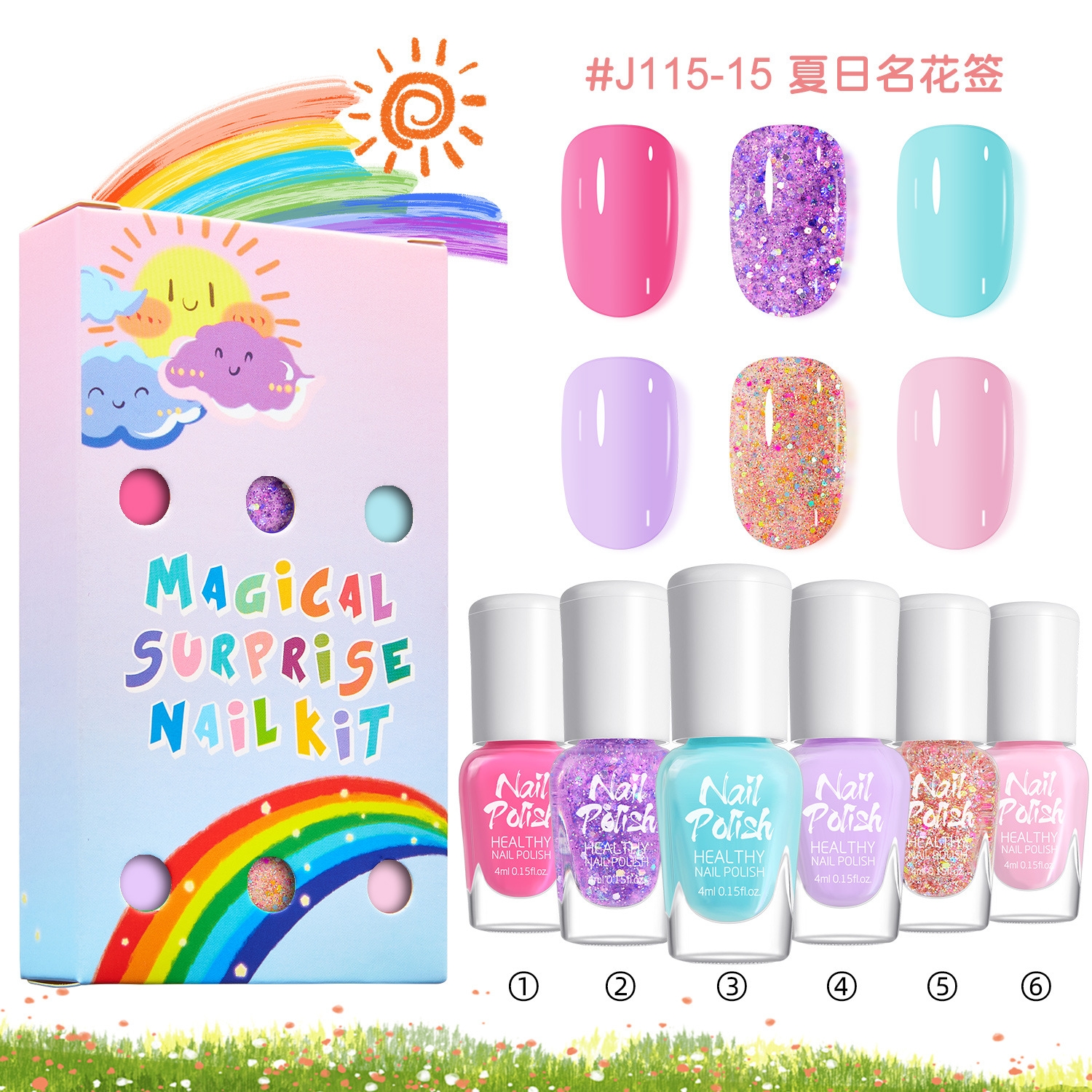 6 컬러 12 컬러 캔디 컬러 환경 친화적 인 어린이 네일 폴란드 세트 껍질을 벗기지 않는 빠른 건조 맛없는 해골 매니큐어 젤