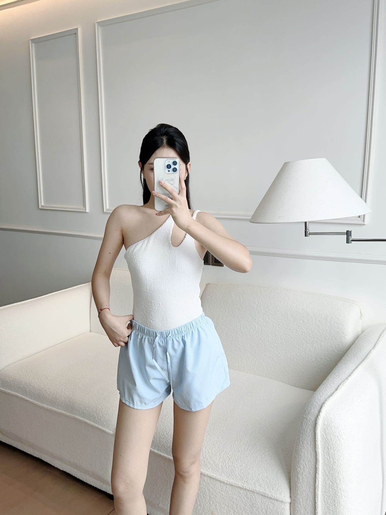 2025 새로운 유행 화이트 슬란 트 숄더 교수형 트라이앵글 벨리 커버 슬림 핏 작은 가슴 모임 온천 휴일 수영복스토어 가기