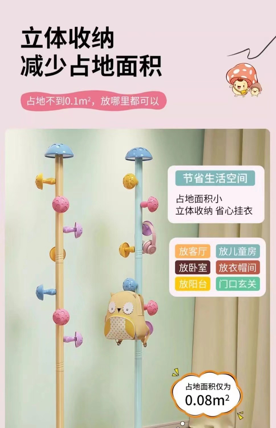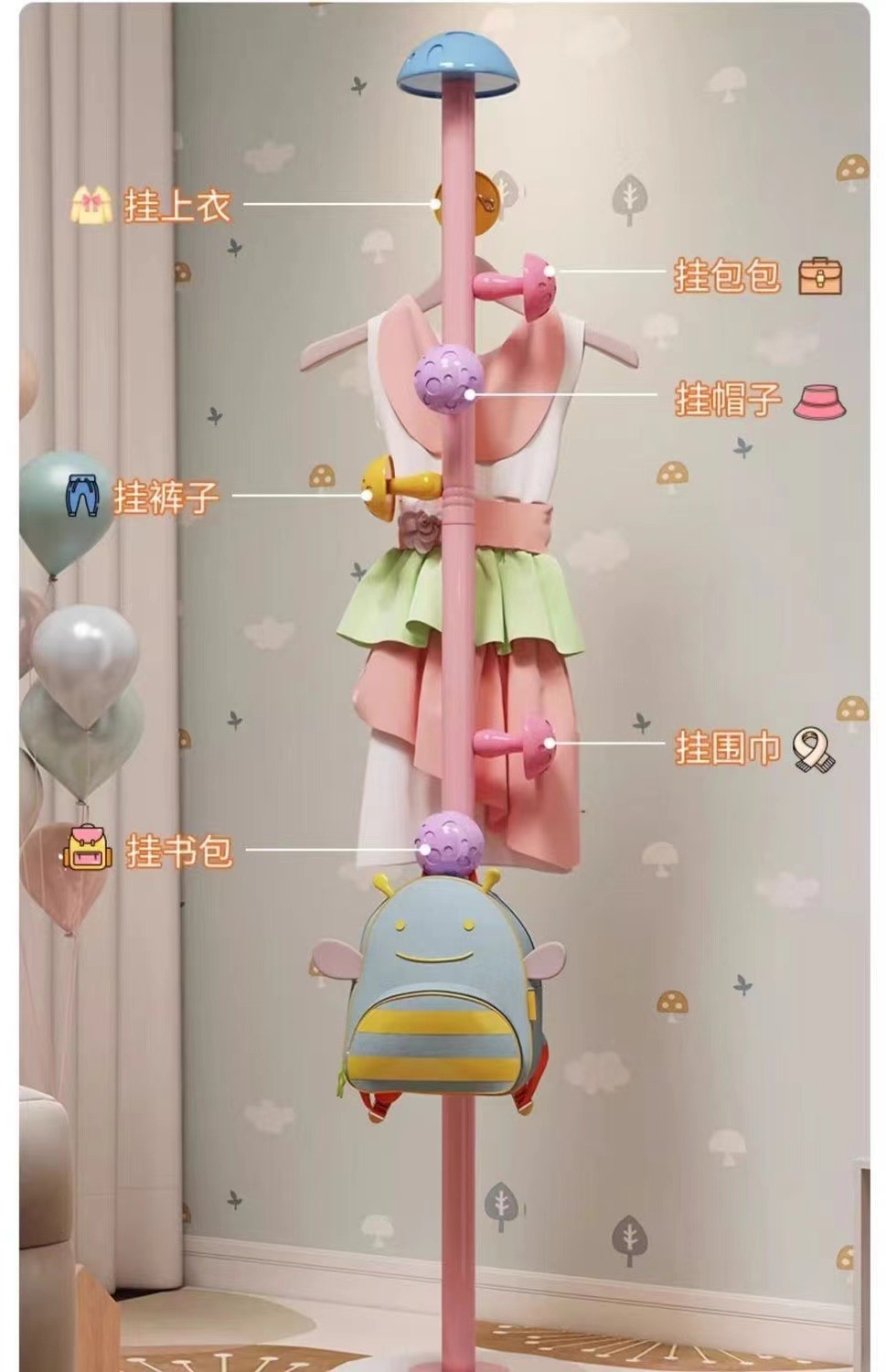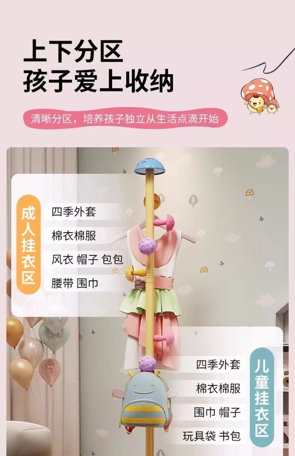 어린이 옷 옷걸이 바닥 버섯 가구 막대 옷 플래그십 스토어 모자 랙 옷 교수형 귀여운 수직 교수형 가방 인터넷 인기 침실스토어 가기