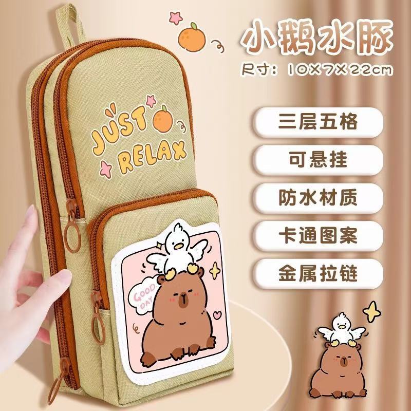 ins 연필 가방 귀여운 다층 대용량 카와이 만화 초등 및 중등 학생을위한 크로스 보더 고급 다기능 문구스토어 가기