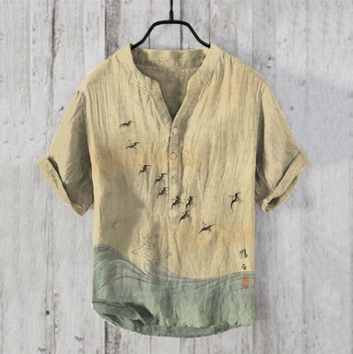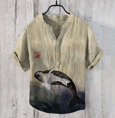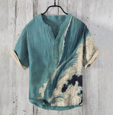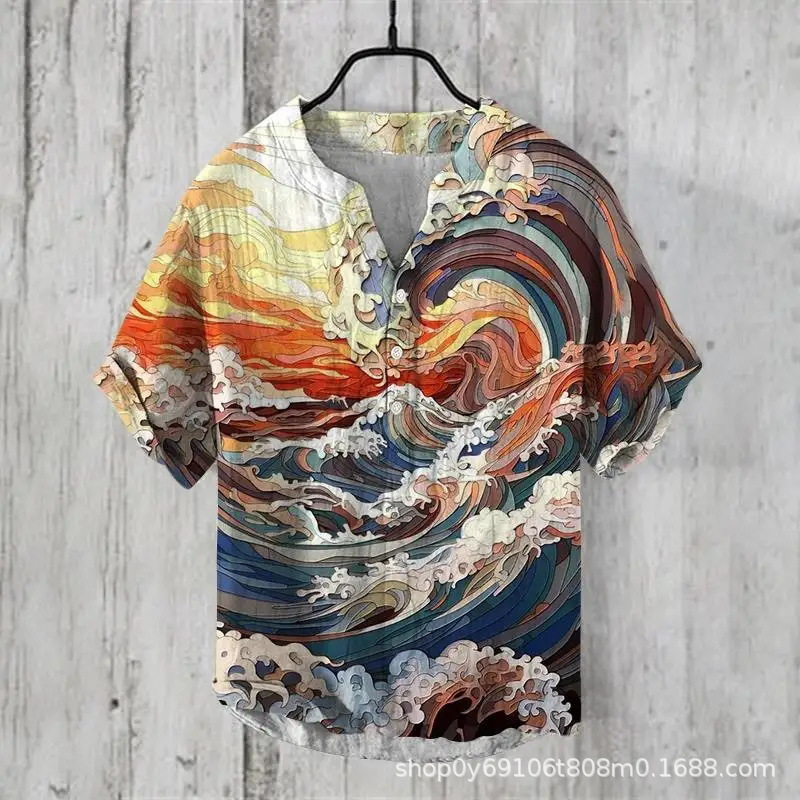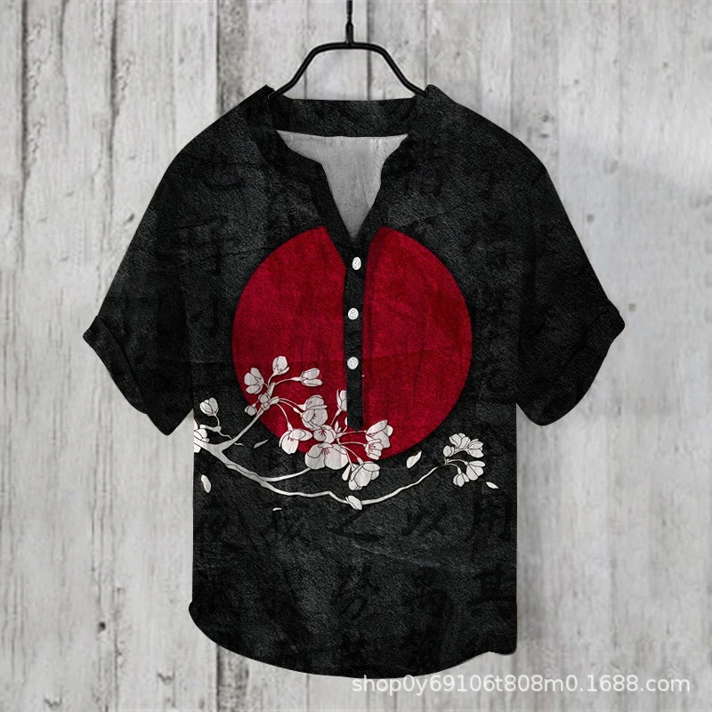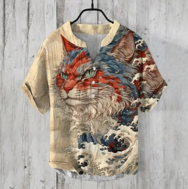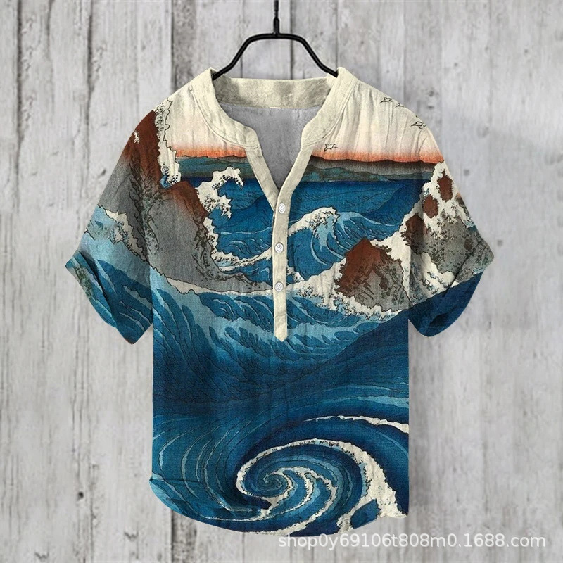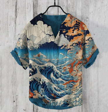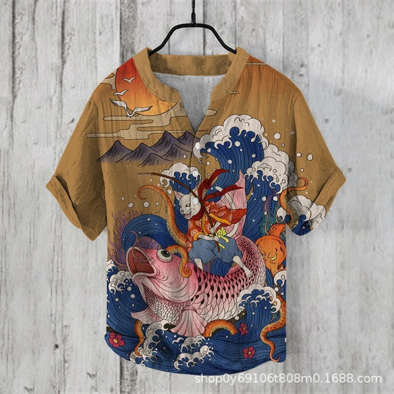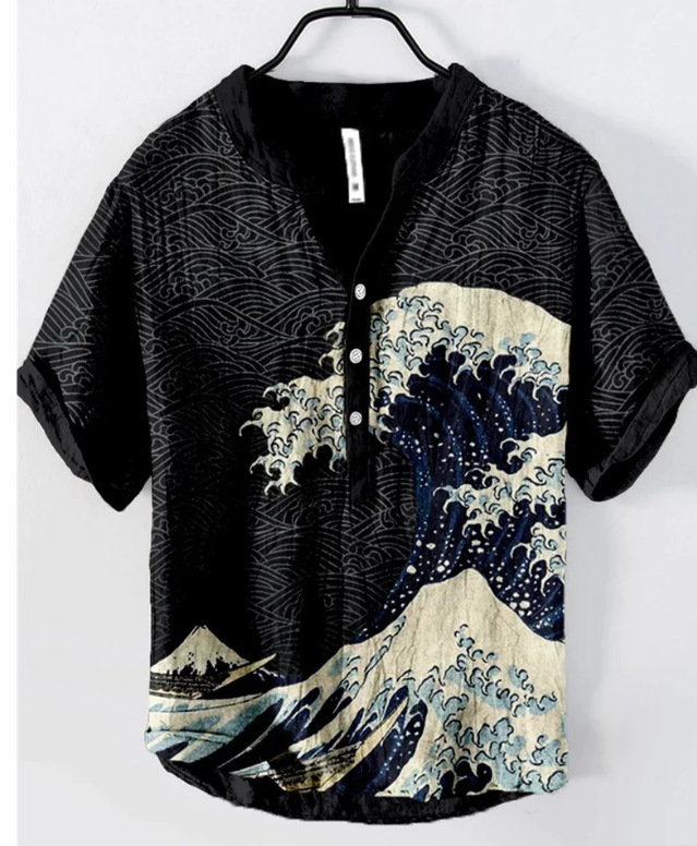 국경 간 아마존 우키 요에 그림 요소 창조적 인 인쇄 3-브레스트 셔츠 디지털 인쇄 캐주얼 남성 셔츠