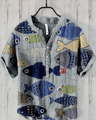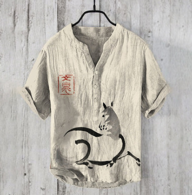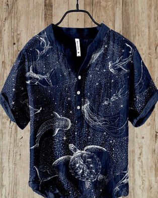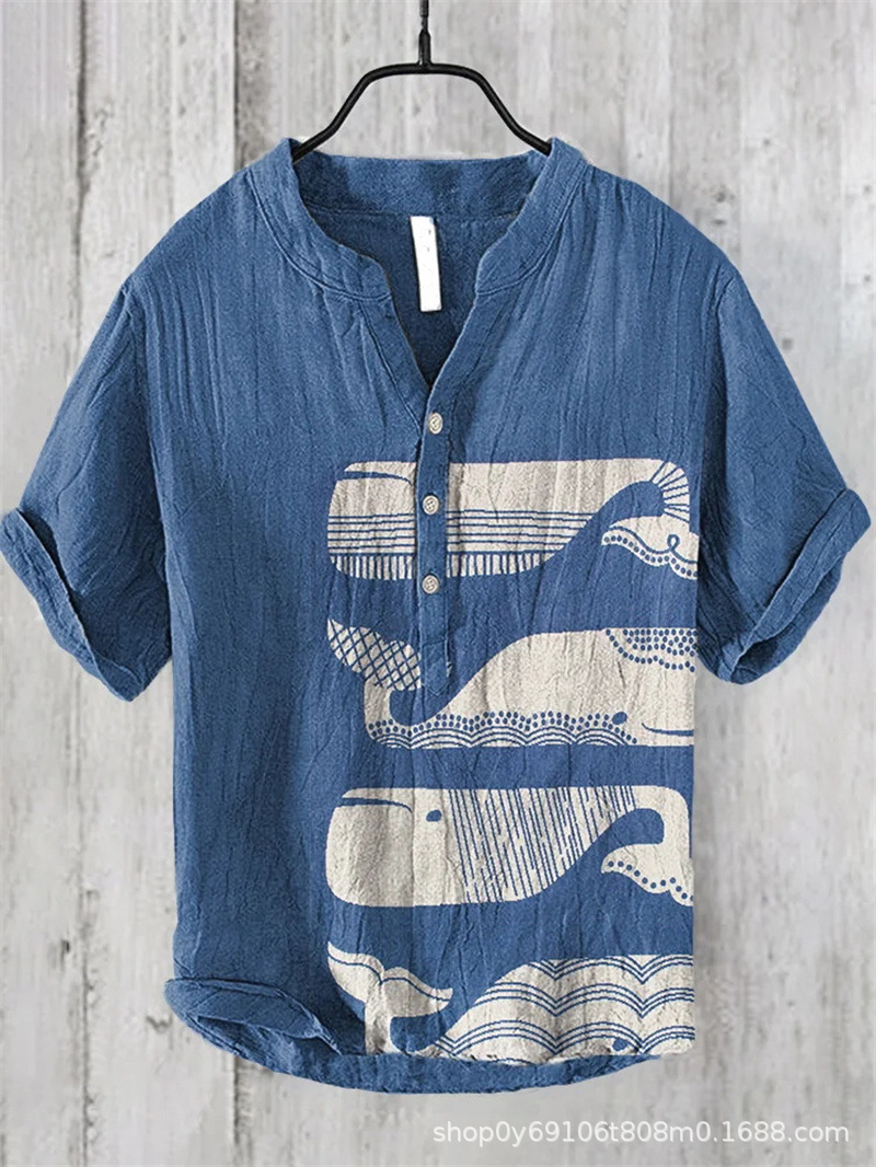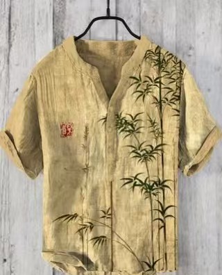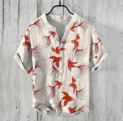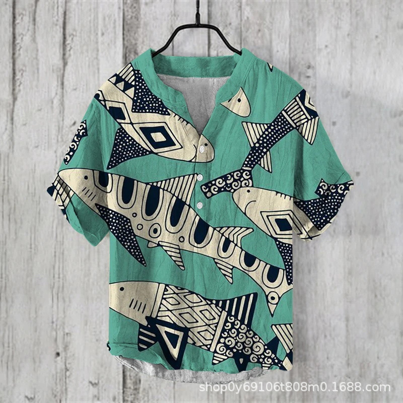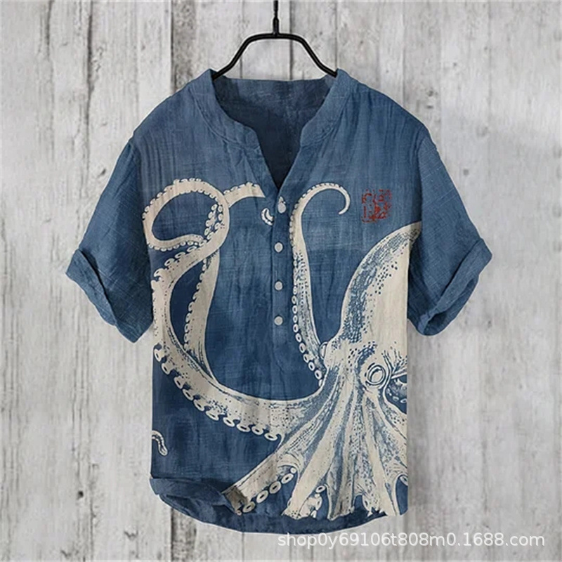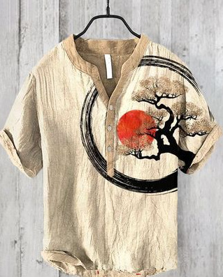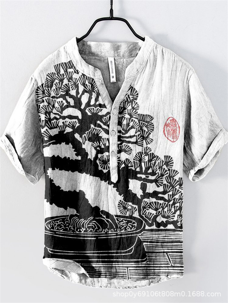 국경 간 아마존 우키 요에 그림 요소 창조적 인 인쇄 3-브레스트 셔츠 디지털 인쇄 캐주얼 남성 셔츠