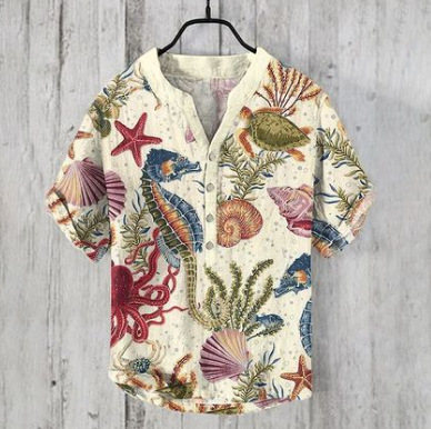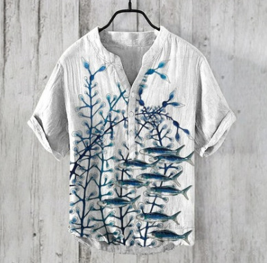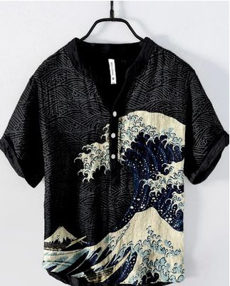 국경 간 아마존 우키 요에 그림 요소 창조적 인 인쇄 3-브레스트 셔츠 디지털 인쇄 캐주얼 남성 셔츠스토어 가기