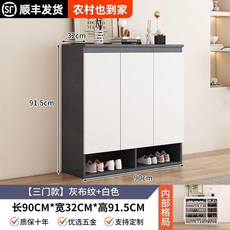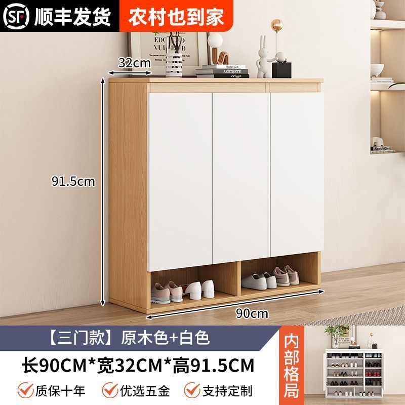 단단한 나무 신발 캐비닛 발코니 2024 새로운 스타일 대용량 저장 캐비닛 복도 간단한 문 길 가정용 다층 신발 캐비닛