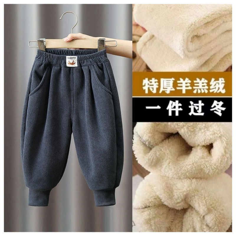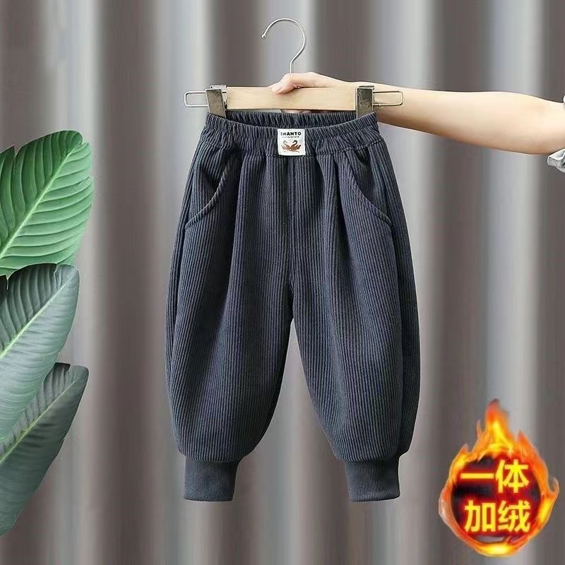 소년 기모 바지 한 조각 양털 2024 년 가을과 겨울 새로운 아기 바지 느슨한 어린이 캐주얼 바지 겨울 패션스토어 가기