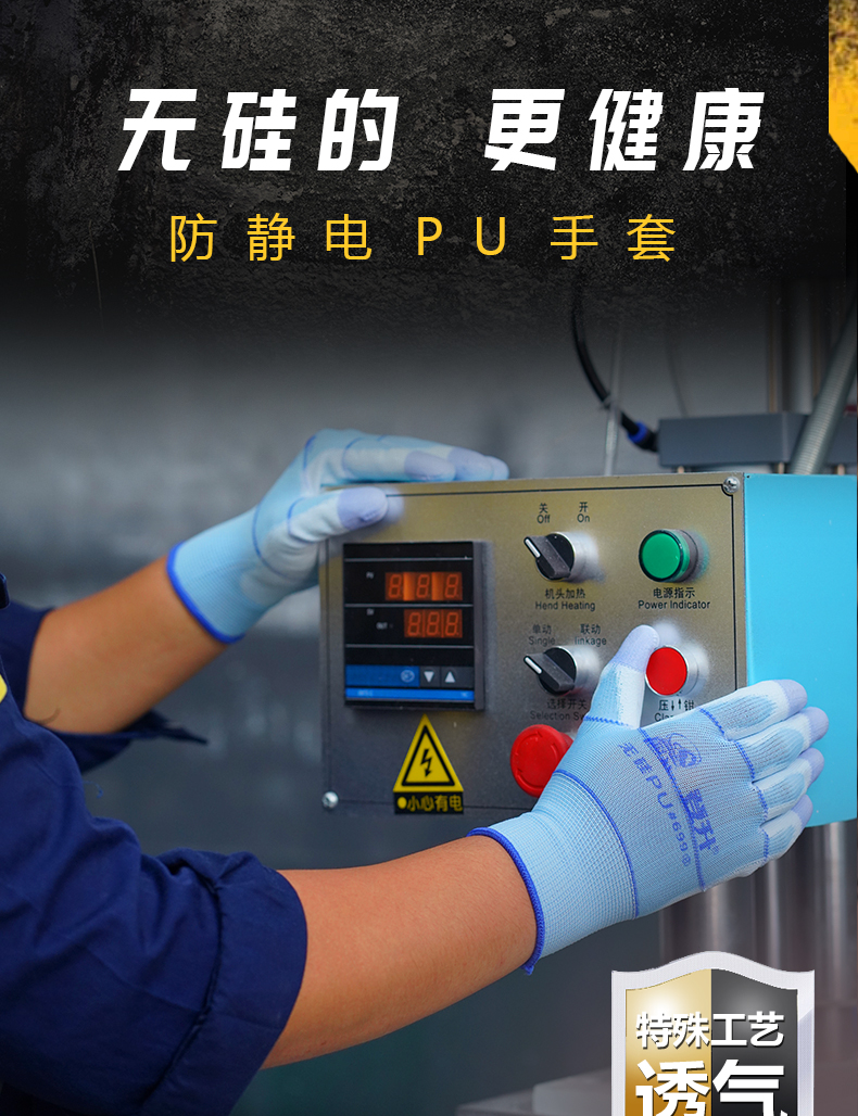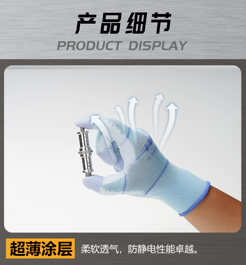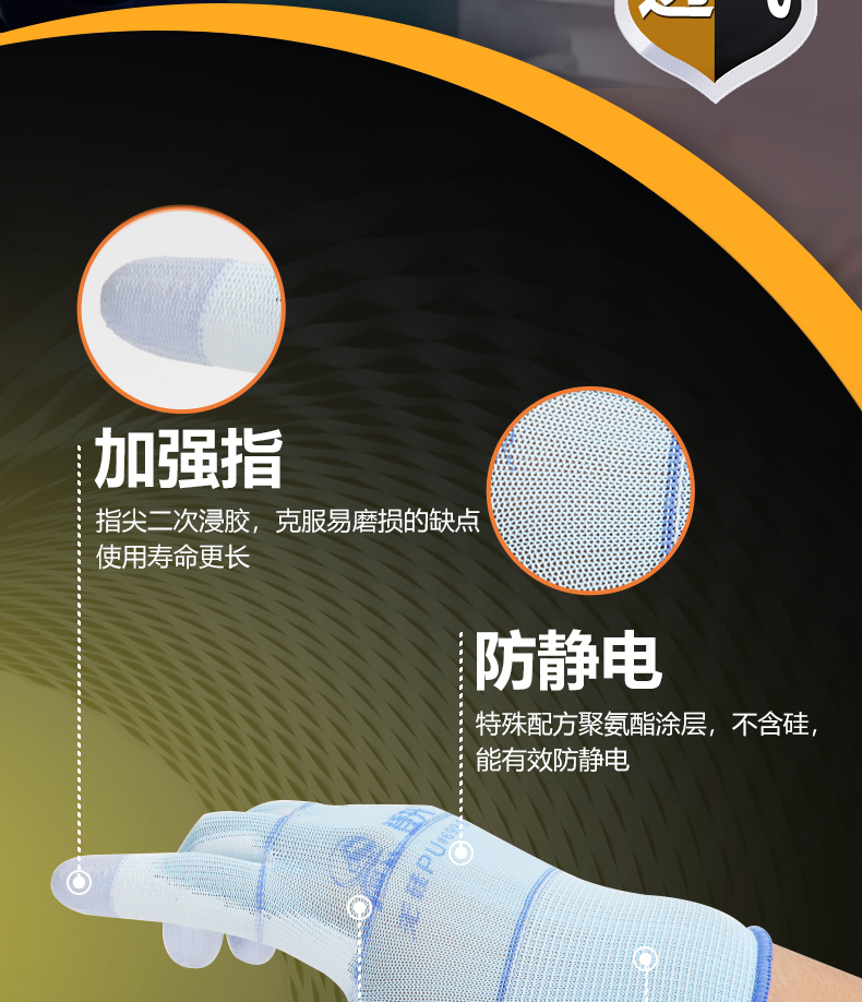 Dengsheng 파인 장갑 699 실리콘 프리 PU 코팅 핑거 팜 나일론 강화 손가락 정전기 방지 얇은 탄성 작업
