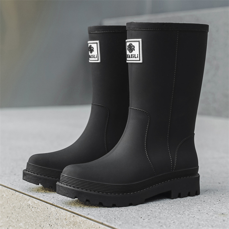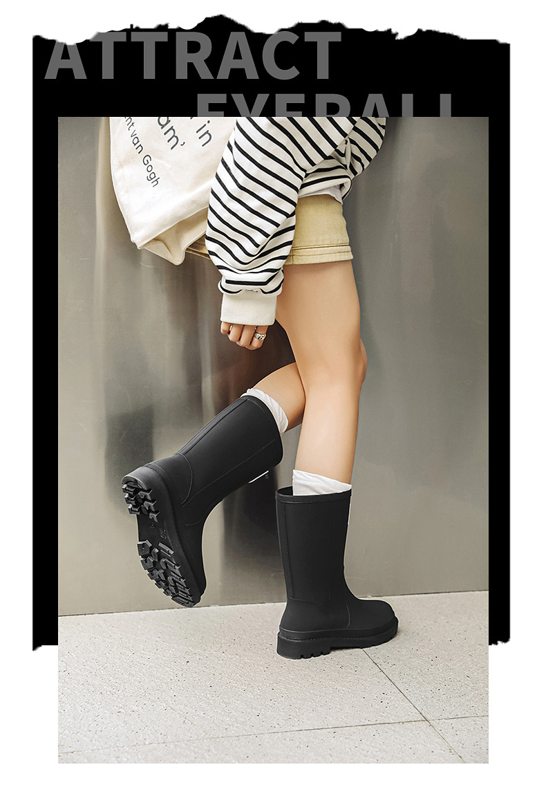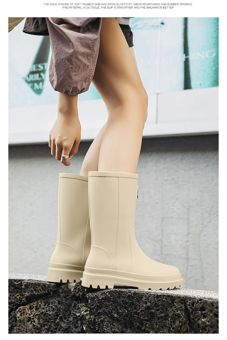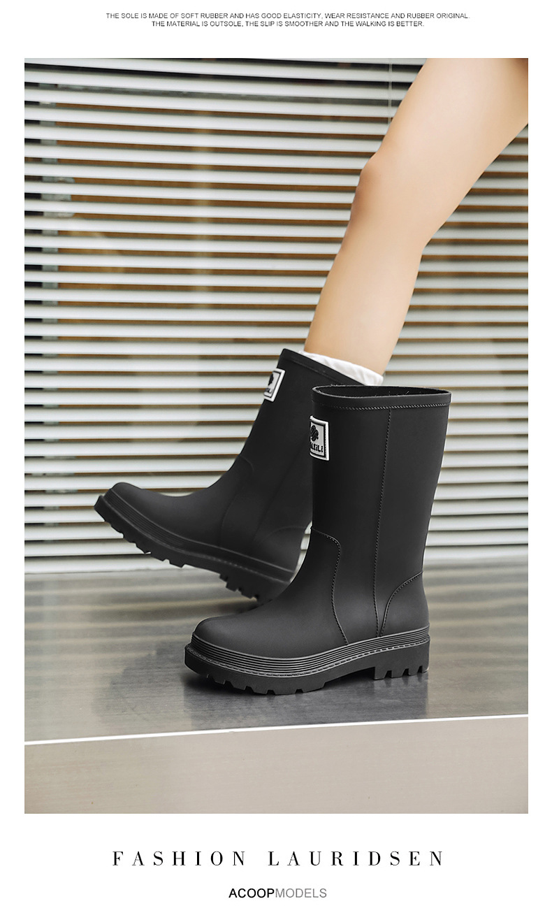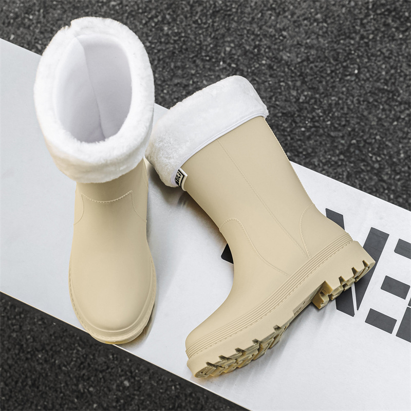 새로운 중간 배럴 장화 여성용 미끄럼 방지 워터 슈즈 아웃트로 패션 워터 부츠 두꺼운 밑창 장화 기모 작업 고무 신발 국경스토어 가기