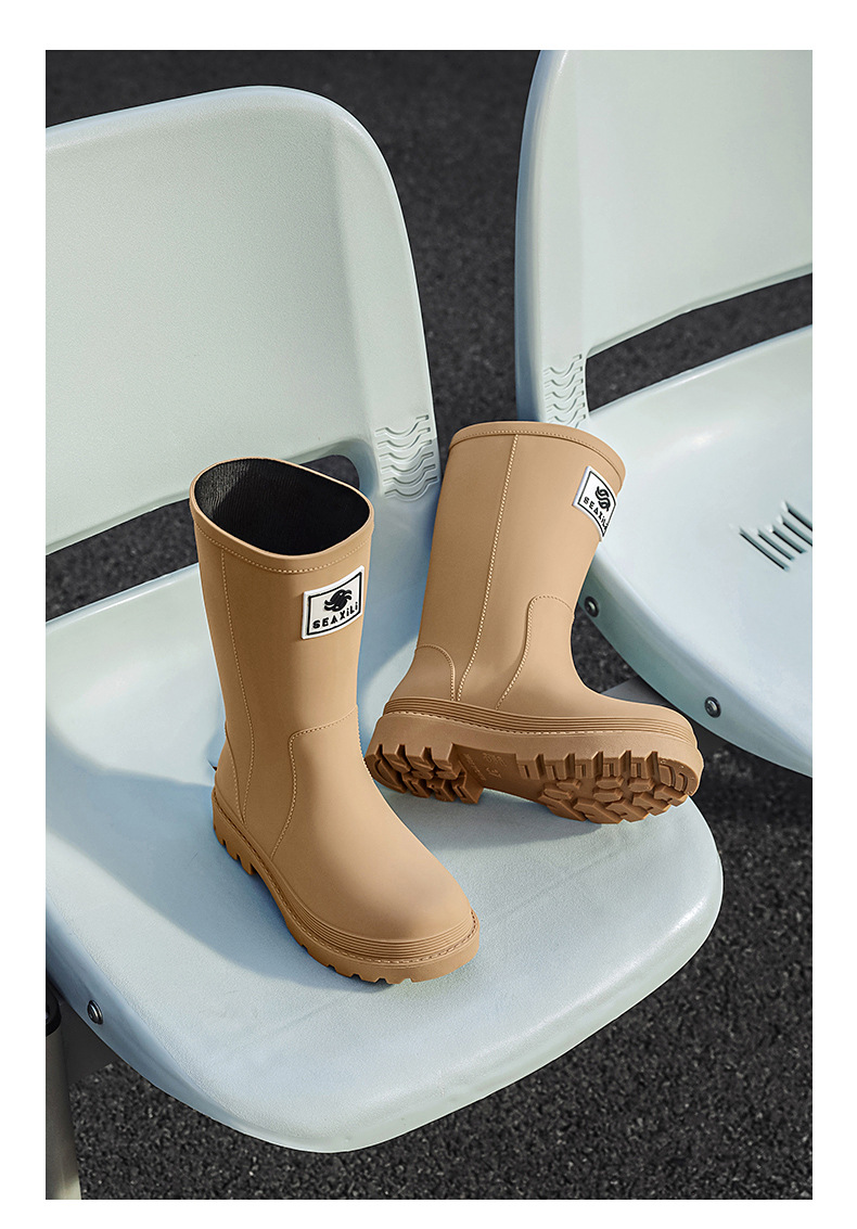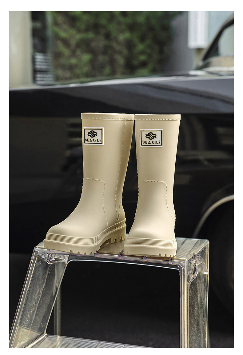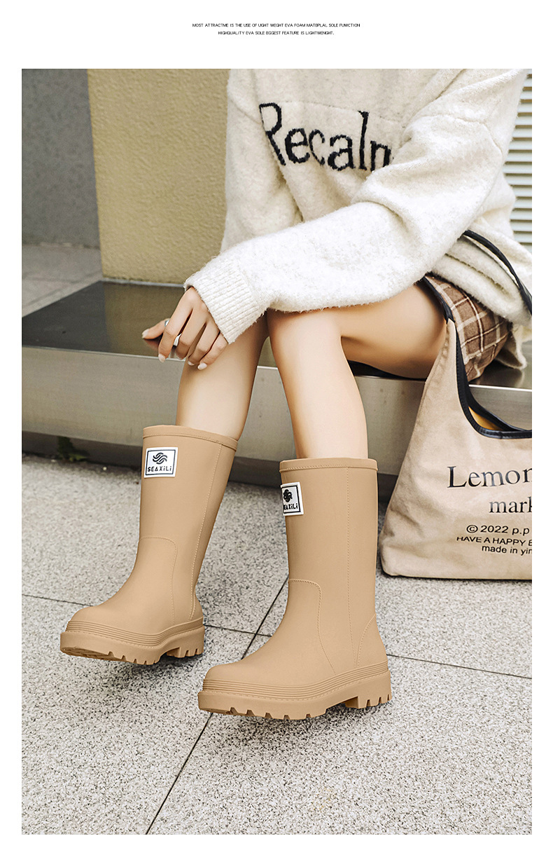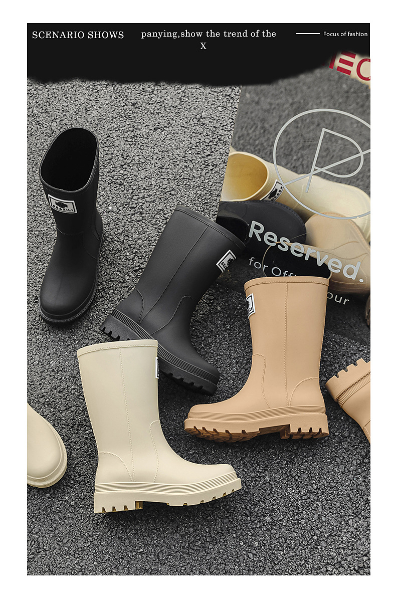 새로운 중간 배럴 장화 여성용 미끄럼 방지 워터 슈즈 아웃트로 패션 워터 부츠 두꺼운 밑창 장화 기모 작업 고무 신발 국경스토어 가기