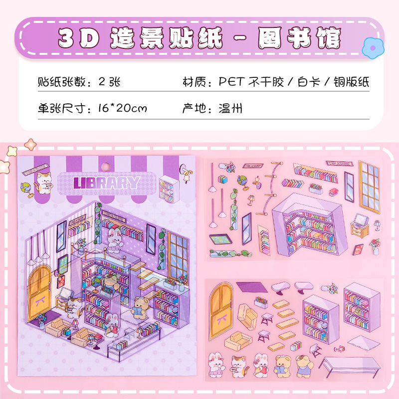3D 입체 풍경 스티커 한국 재미 만화 귀여운 꿈 오두막 작은 빨간 승마 책 감압 DIY 손 계정 스티커스토어 가기
