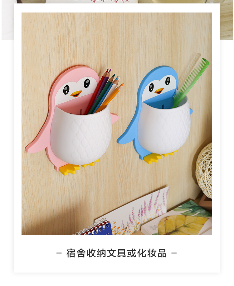 창조적 인 만화 펭귄 저장 랙 메이크업 도구 적합 상자 기숙사 칫솔 침대 옆 휴대 전화 벽 교수형스토어 가기