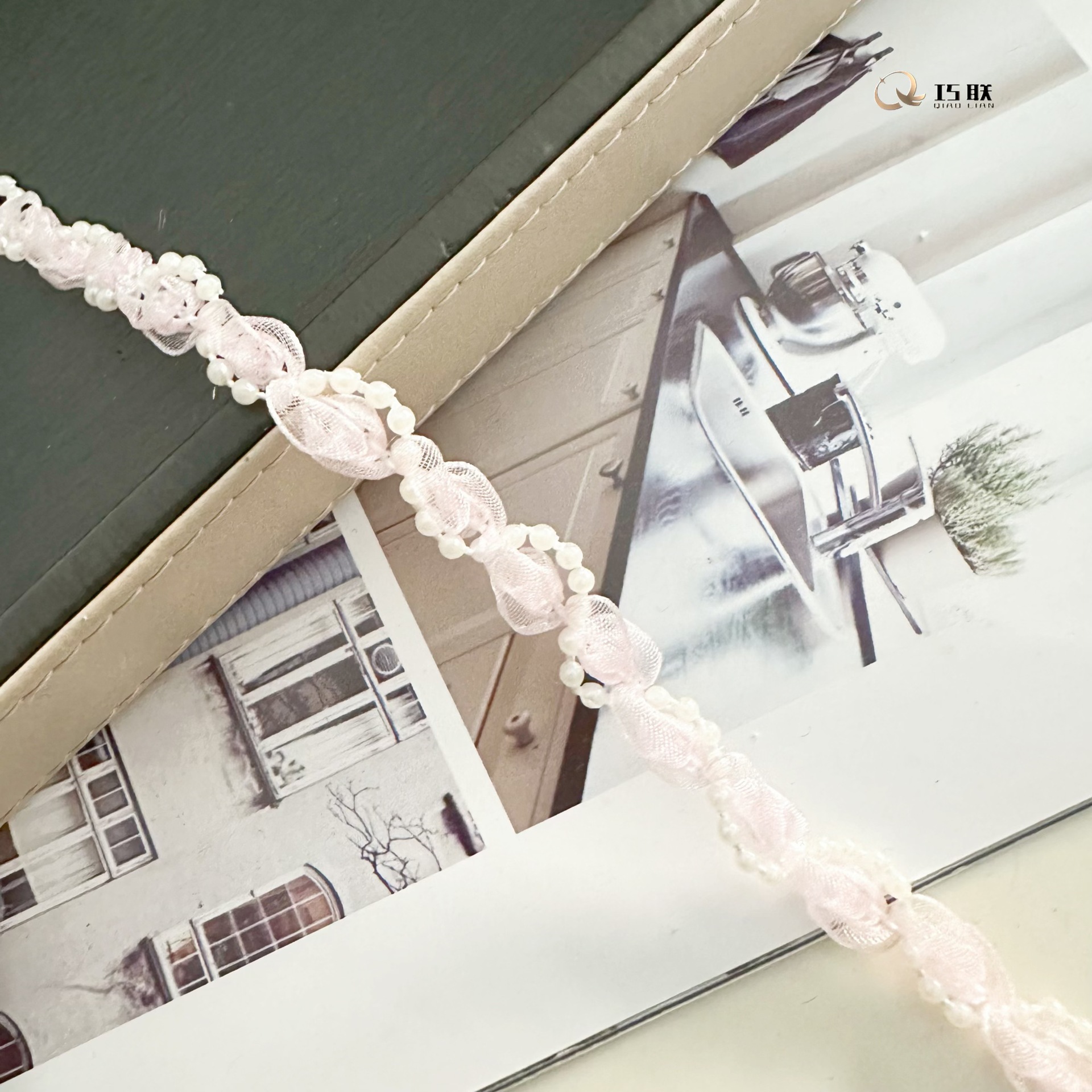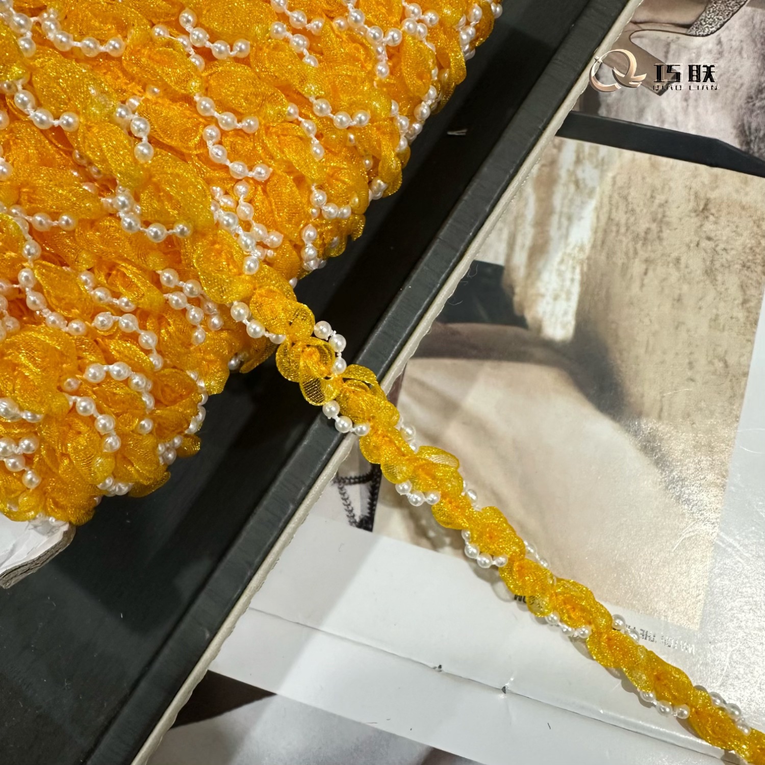 공장 재고 1cm 장미 꽃 진주 스노우 원사 레이스 캔디 컬러 여성 의류 액세서리 수하물 장식 액세서리스토어 가기