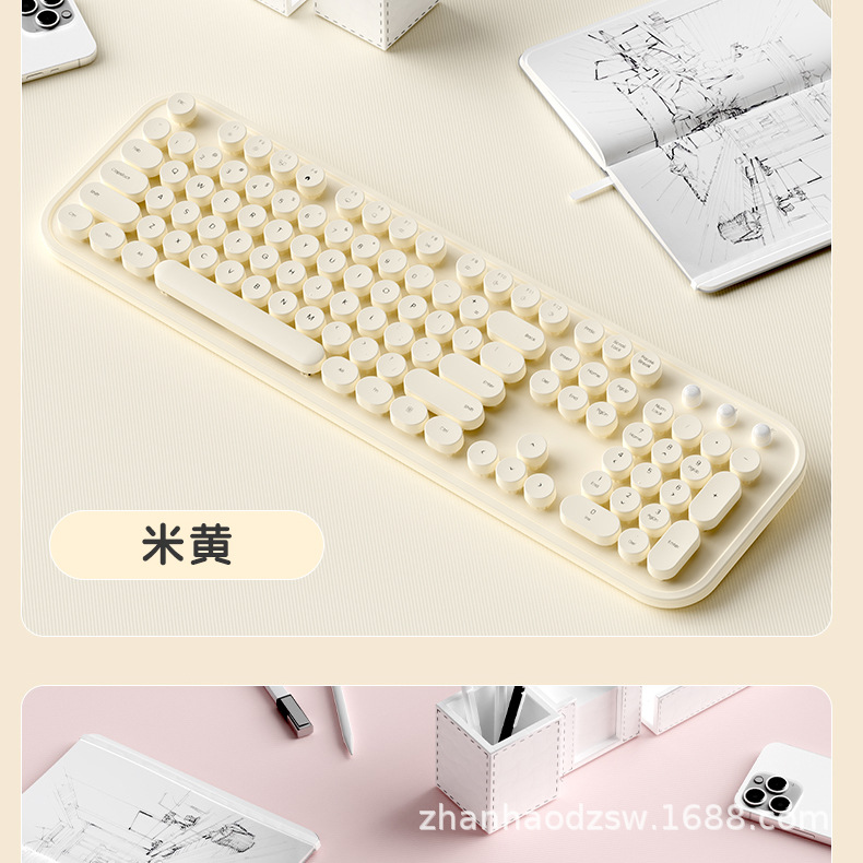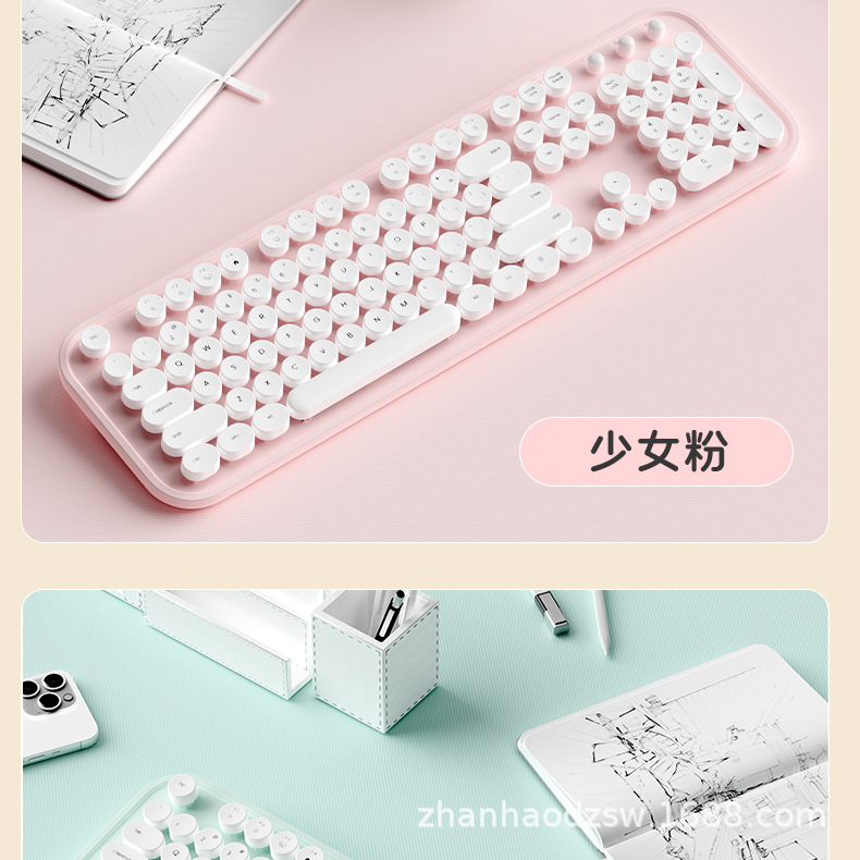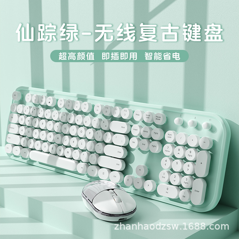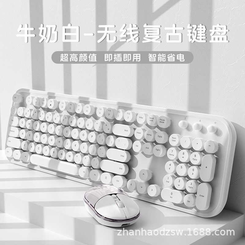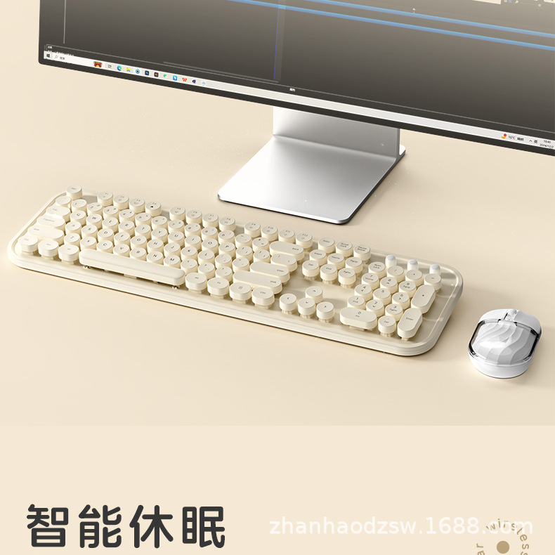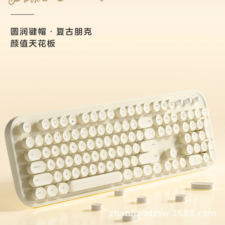 ROUND R104 무선 2.4G 키보드 펑크 레트로 소녀 귀여운 라운드 키 캡 데스크탑 노트북 크로스 테두리스토어 가기