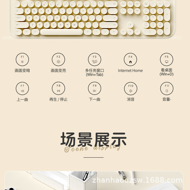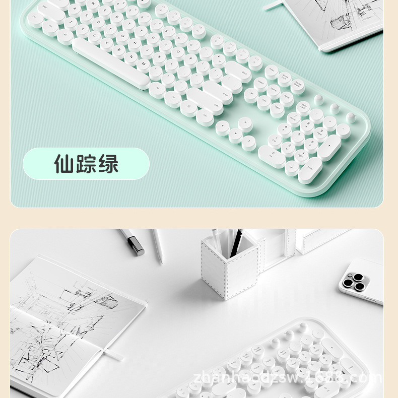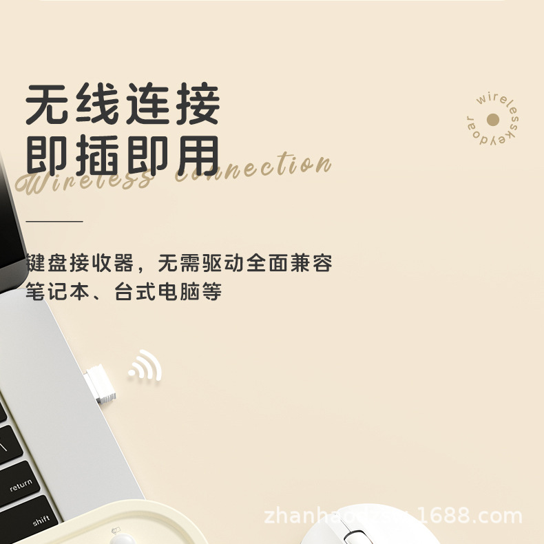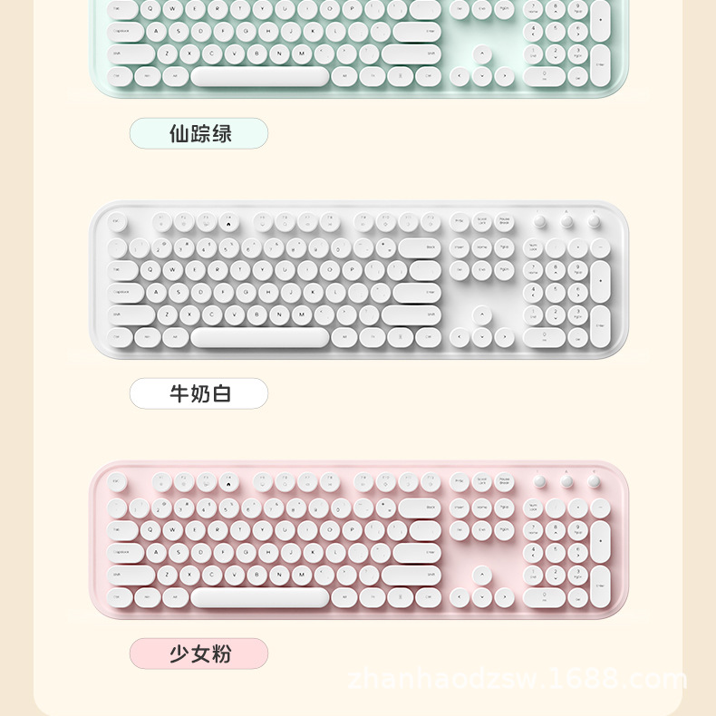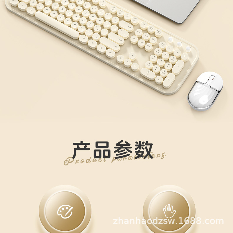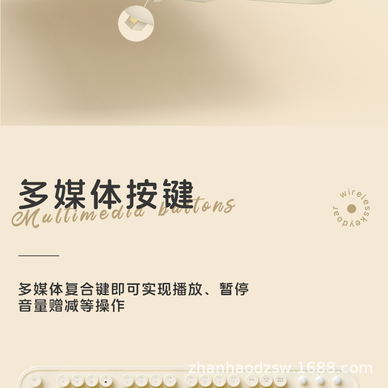 ROUND R104 무선 2.4G 키보드 펑크 레트로 소녀 귀여운 라운드 키 캡 데스크탑 노트북 크로스 테두리스토어 가기