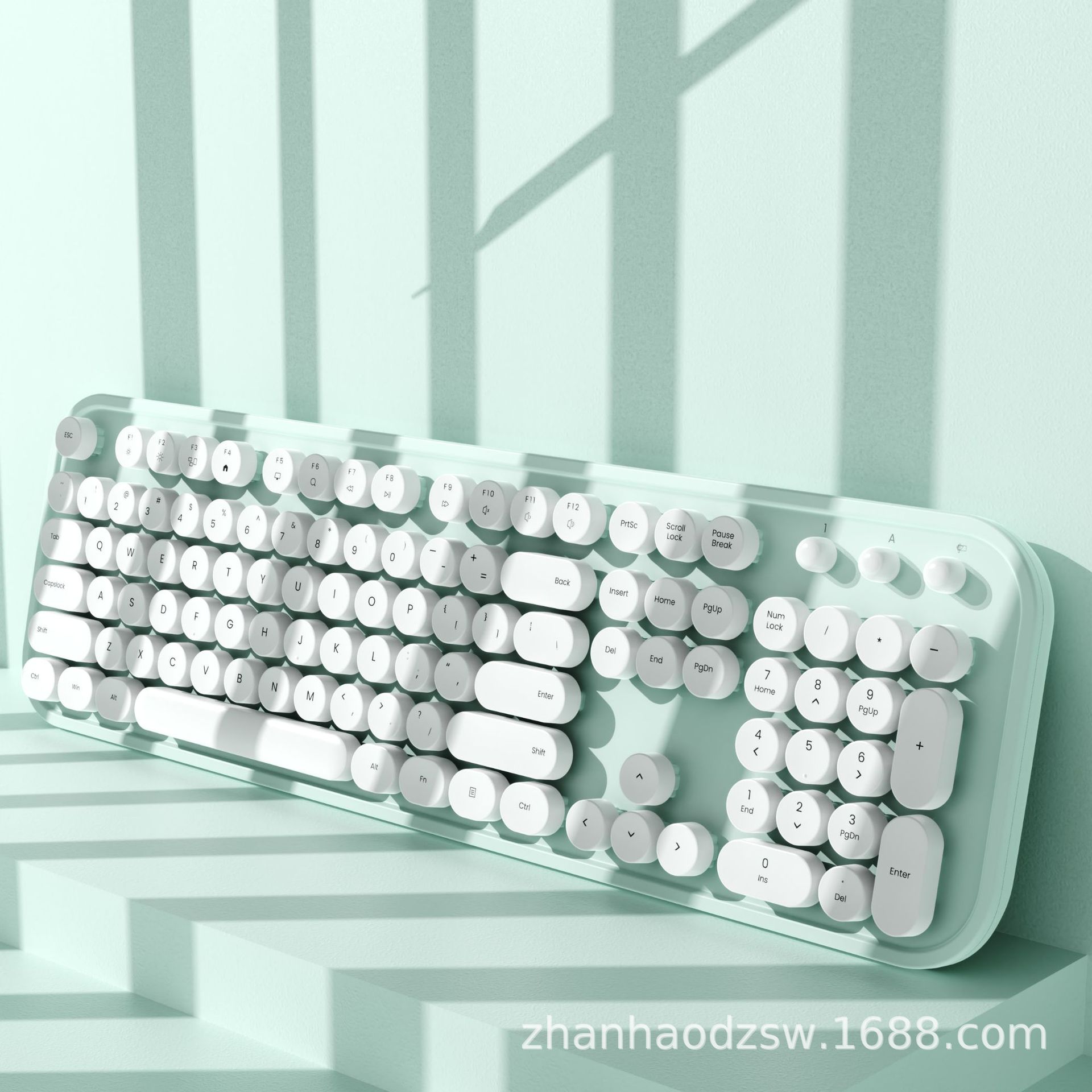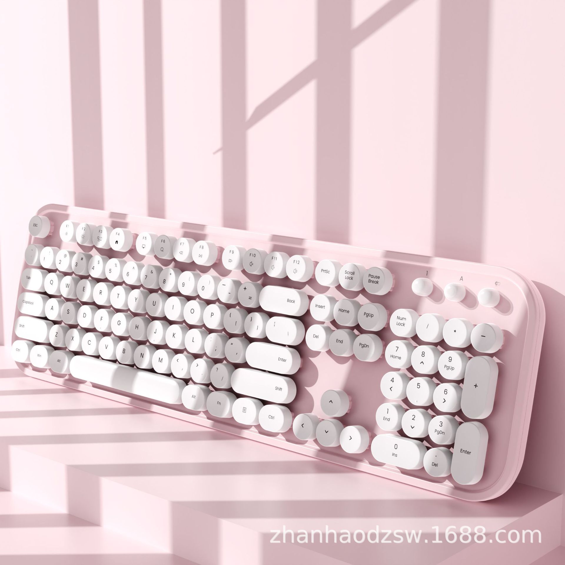 ROUND R104 무선 2.4G 키보드 펑크 레트로 소녀 귀여운 라운드 키 캡 데스크탑 노트북 크로스 테두리