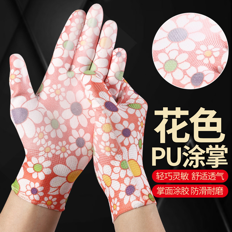 컬러풀한 PU 접착제, 가볍고 통기성이 뛰어나며 미끄럼 방지 및 내마모성이 뛰어난 남성용 및 여성용 전자 공장 노동 작업 노동 보호 장갑스토어 가기
