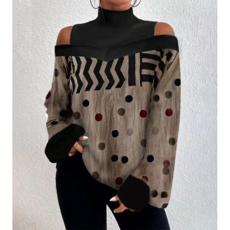 2023 년 독점 국경 간 봄 여성 의류 숄더 드롭 디자인 여성 랜턴 슬리브 프린트 탑
