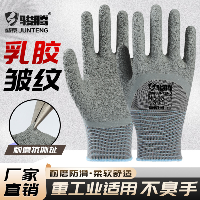 라텍스 주름 반침수 내마모성 미끄럼 방지 고무 내유성 및 방수 철근 건설 현장 운반 작업 절연 노동 보호 장갑스토어 가기