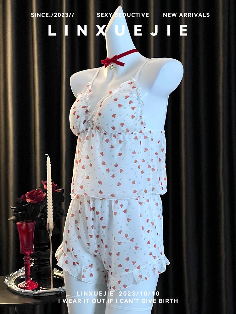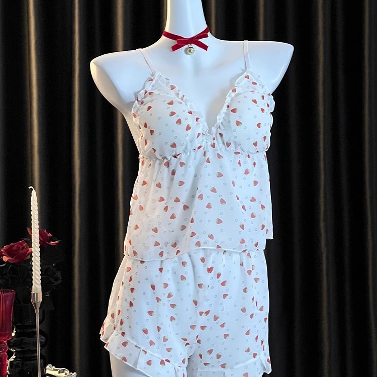 섹시한 꽃 쉬폰 멜빵 파자마 반바지 2 종 봄과 여름 달콤한 귀여운 홈 의류 여성 도매스토어 가기