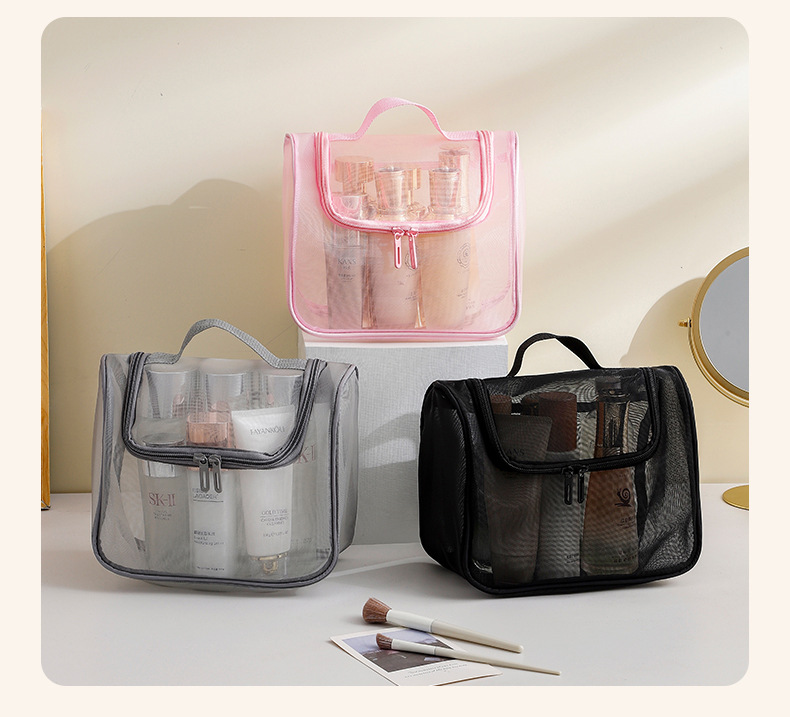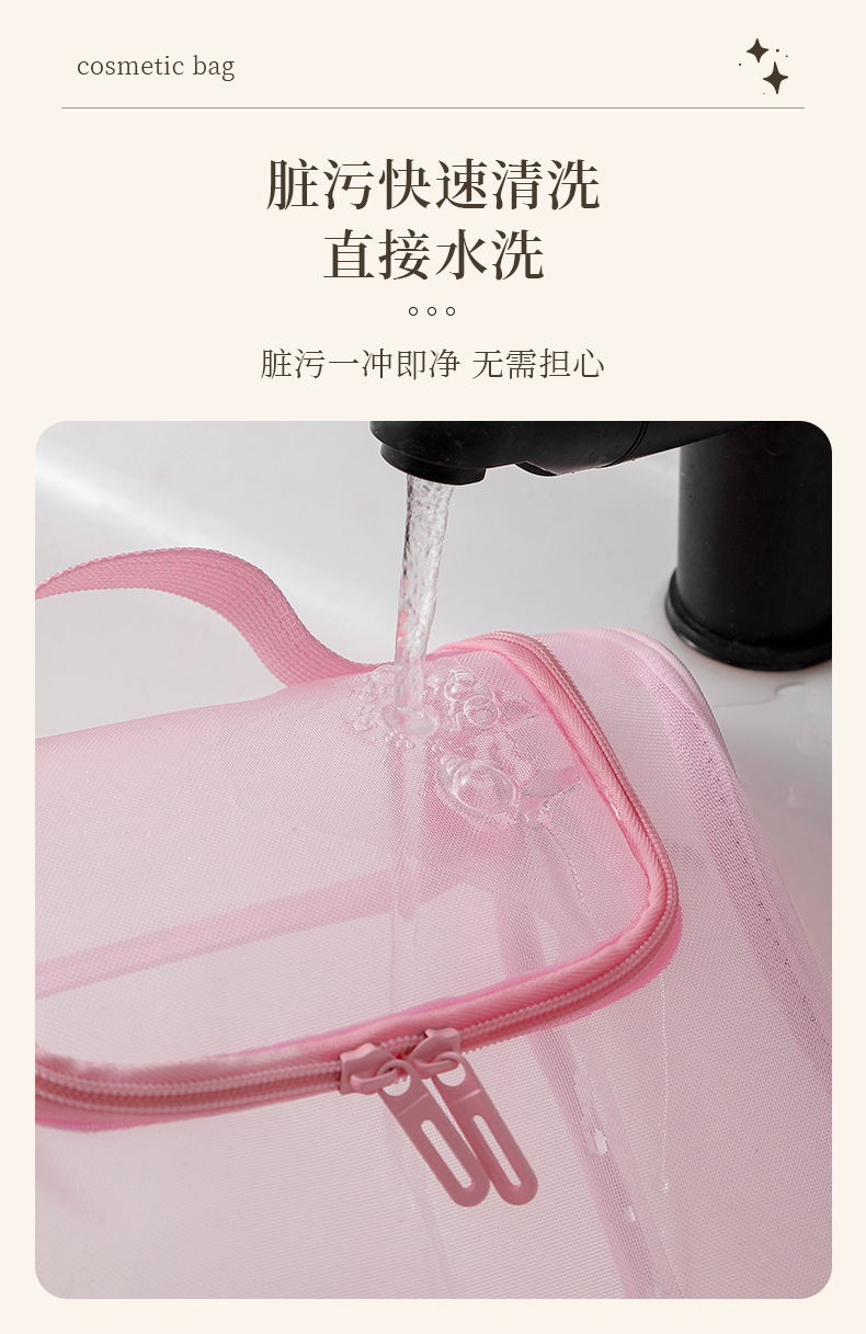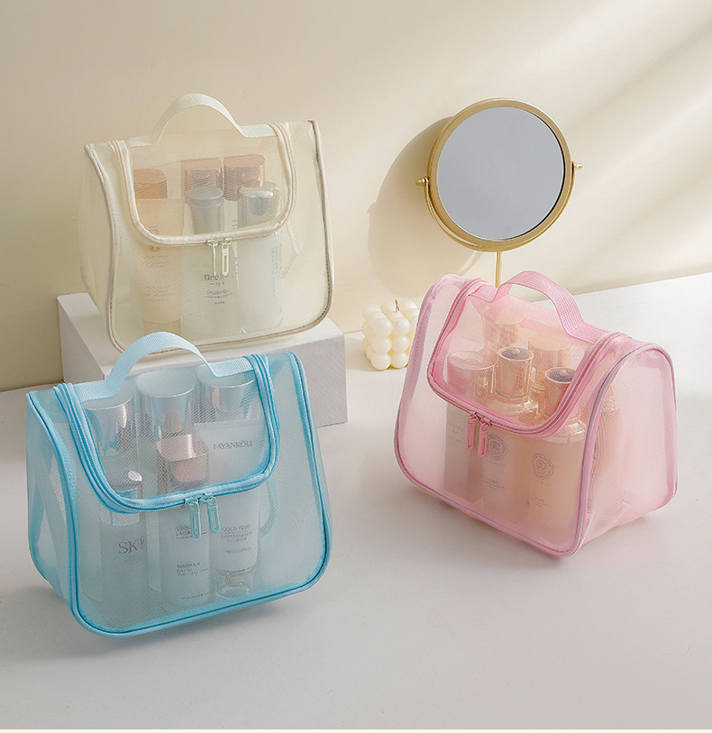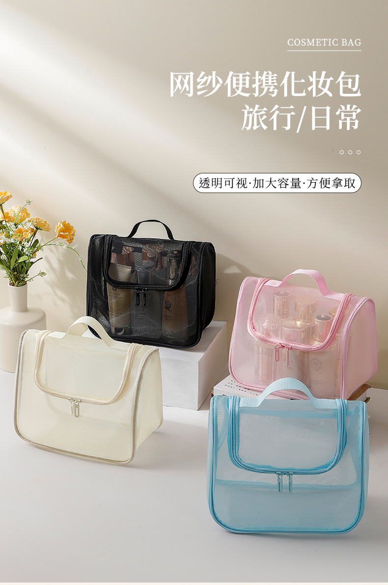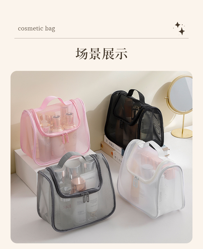 메쉬 휴대용 화장품 가방 대용량 휴대용 화장품 보관 가방 다기능 높은 가치 세척 가방 곡선 가방스토어 가기