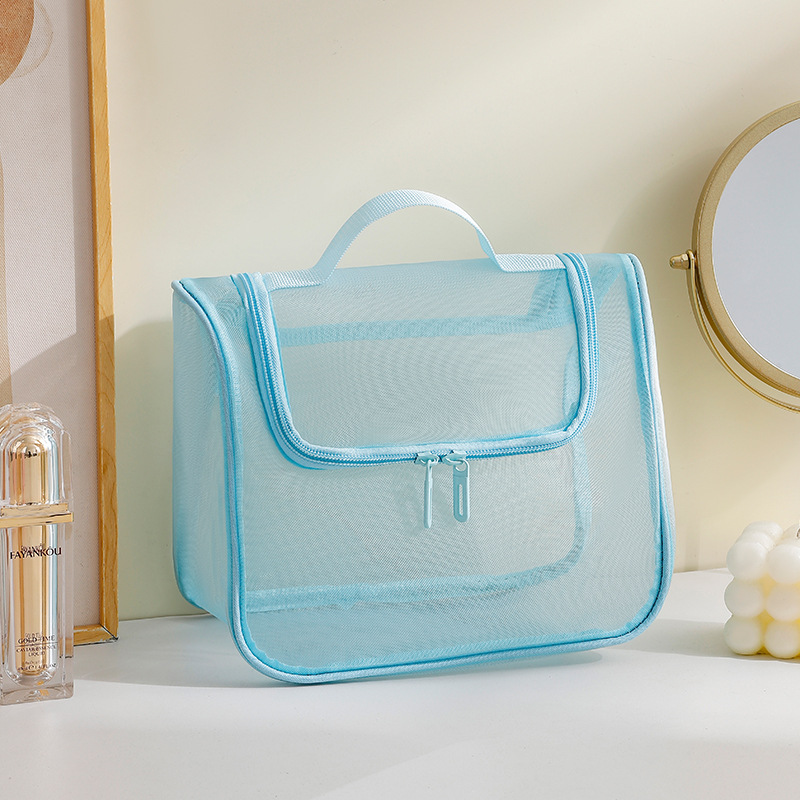 메쉬 휴대용 화장품 가방 대용량 휴대용 화장품 보관 가방 다기능 높은 가치 세척 가방 곡선 가방